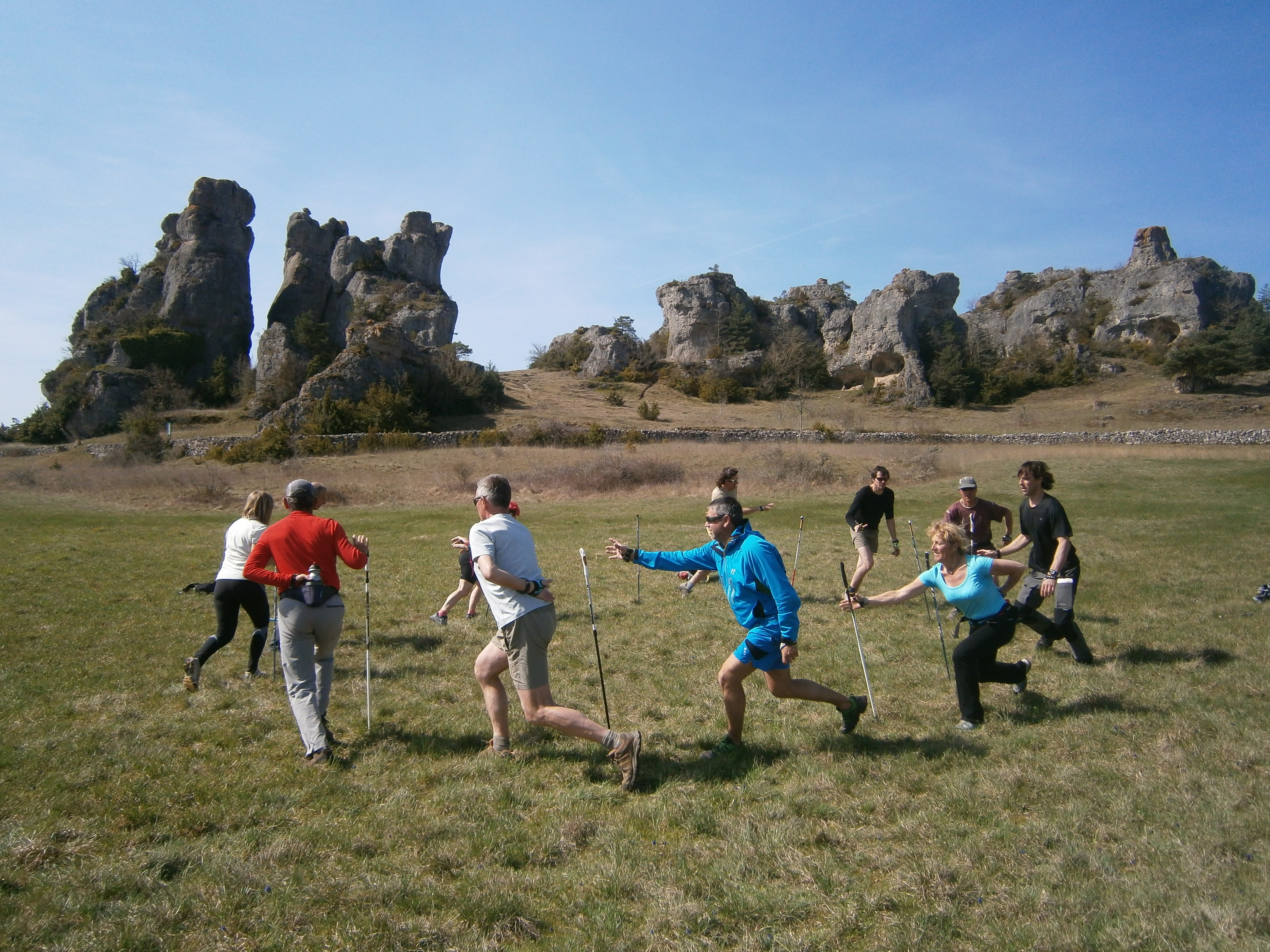 Encadrement marche nordique tous niveaux : la marche nordique ou "nordic walking" est une activité qui convient à tout public, et à tout âge, et qui permet de faire du sport en groupe et de partager un moment convivial. Une séance d'une 1/2 journée comprend l'intégration progressive d'une posture, d'une gestuelle et de rythmes respiratoires spécifiques à la marche avec bâtons de nordic walking. Elle consiste en un réveil musculaire et énergétique, des conseils techniques, des ateliers ludiques et des étirements légers.