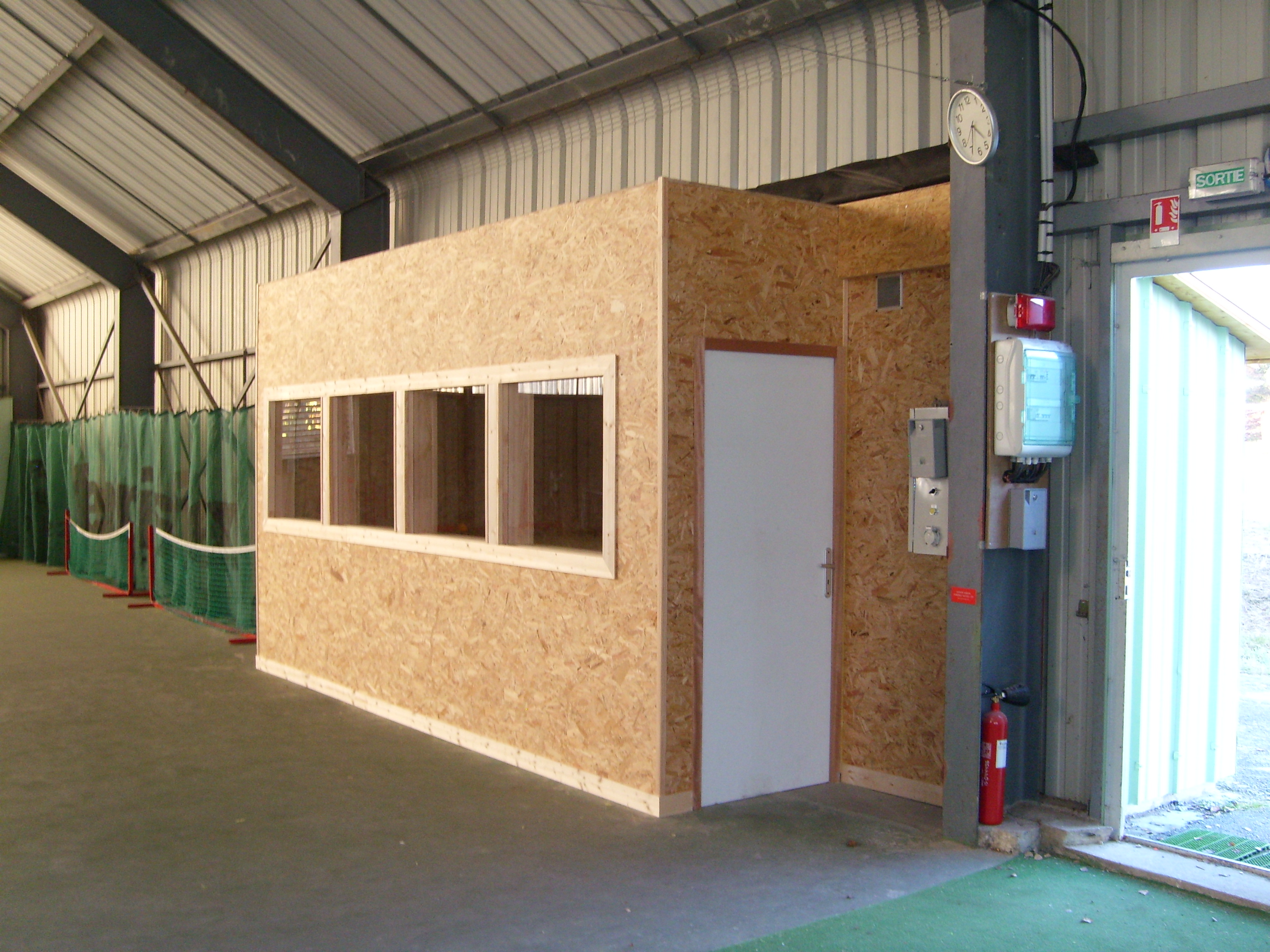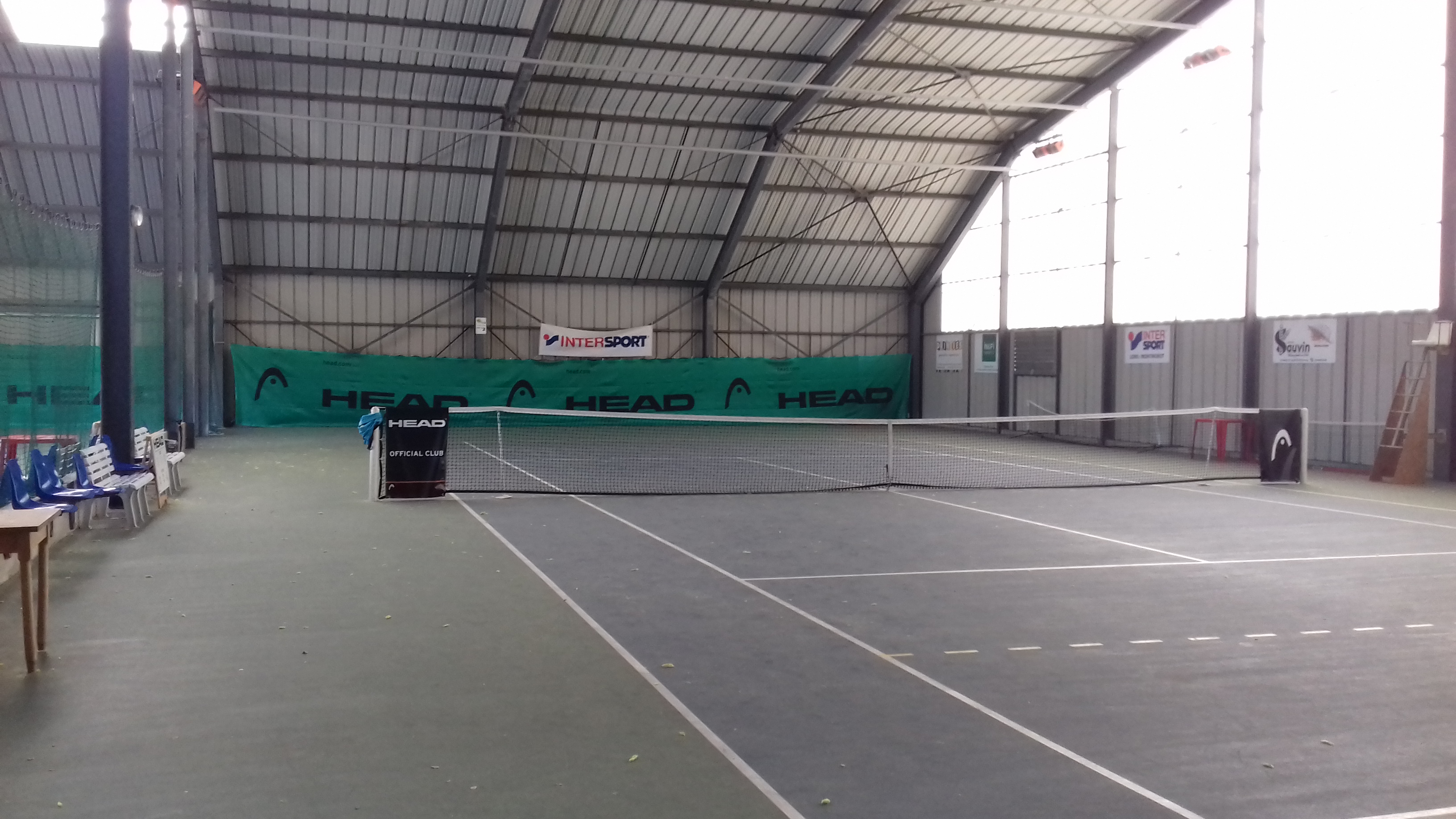 2 courts extérieurs en gazon synthétique / 2 courts couverts en résine, 1 club house, 1 terrain de pétanque, parking