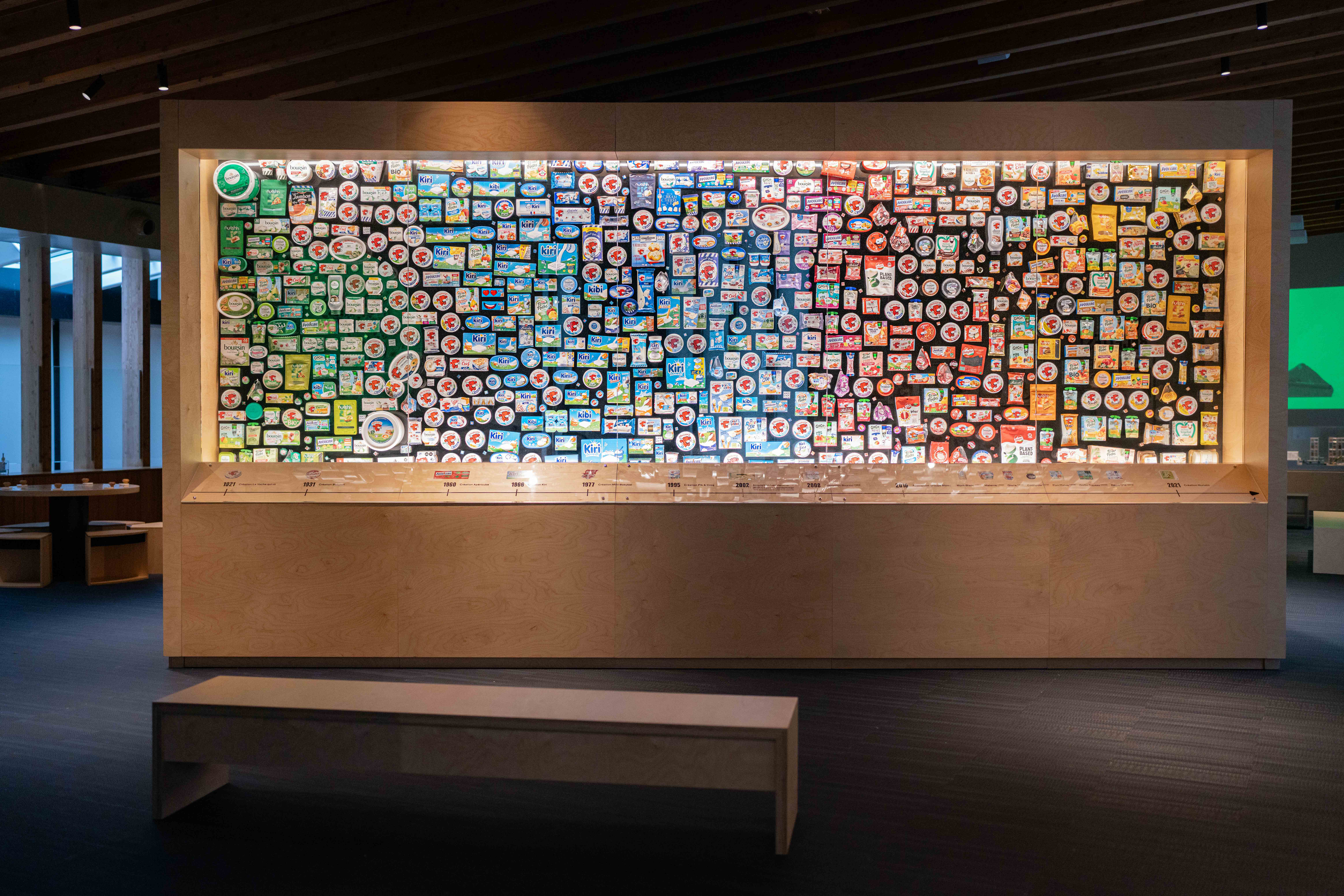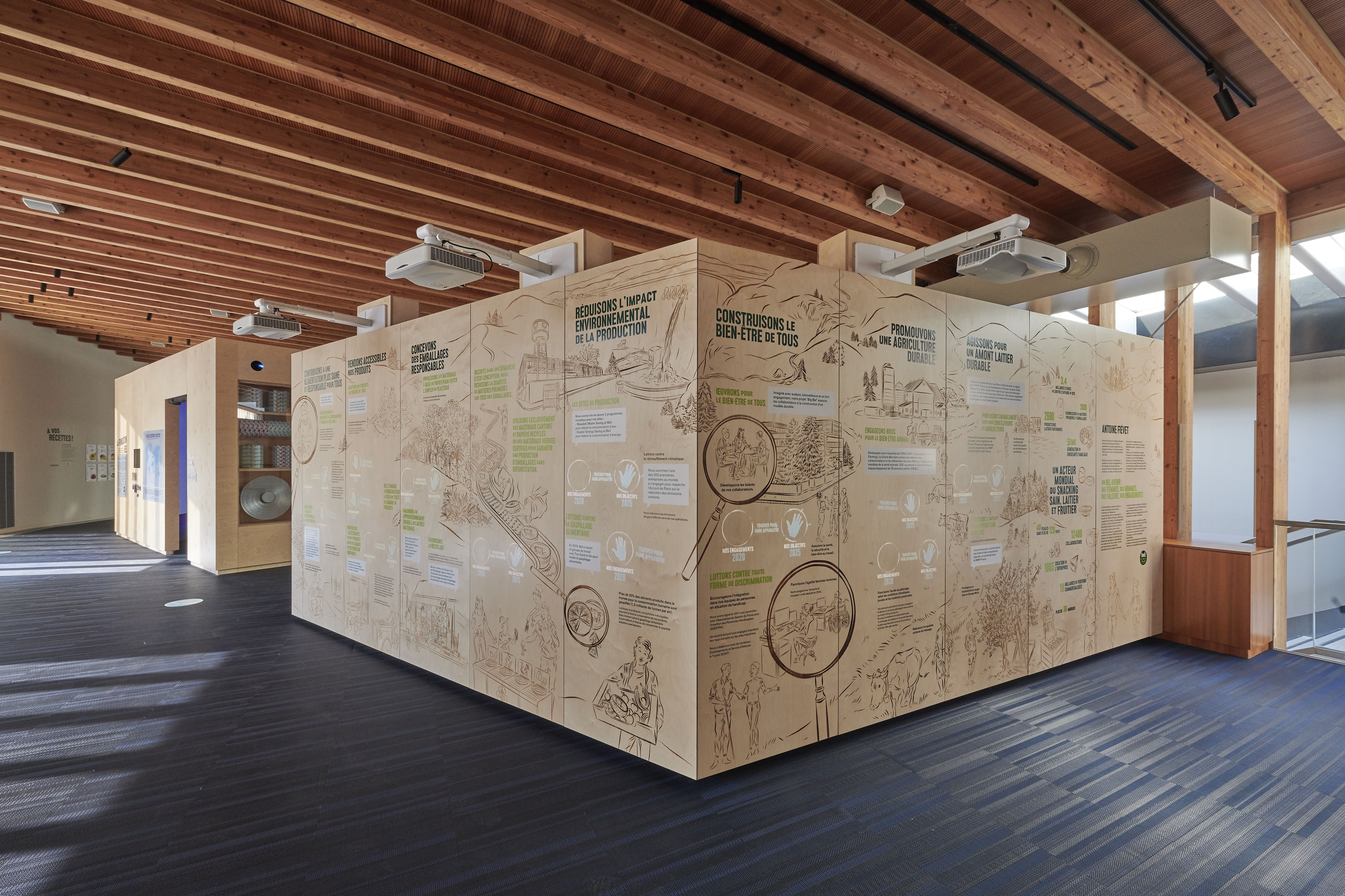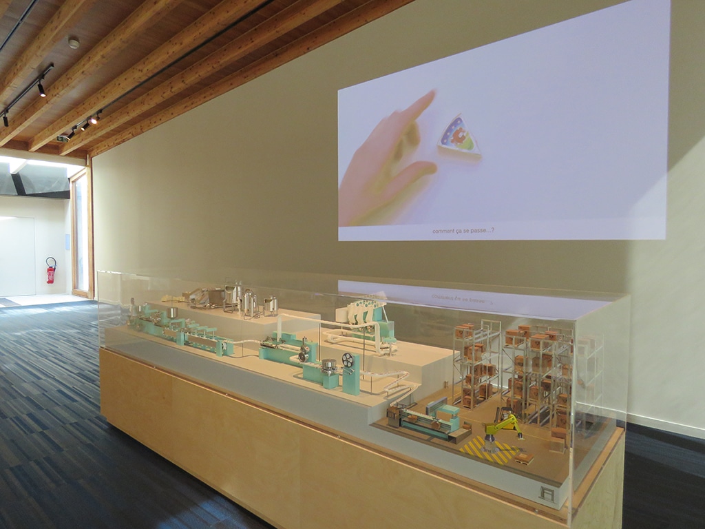 Sa scénographie, à la fois moderne et intemporelle, retrace la fondation du Groupe, la création de sa marque emblématique, ses nombreuses innovations, ainsi que ses préoccupations les plus actuelles et son engagement pour une alimentation plus saine et responsable pour tous.