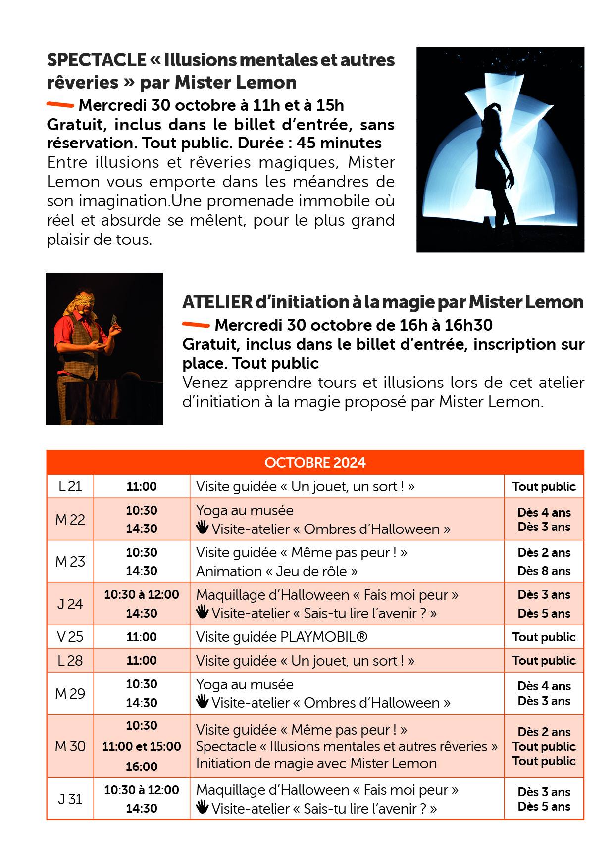 Inscription sur place (inclus dans le billet d'entrée) / Durée : 30min / à partir de 8 ans.