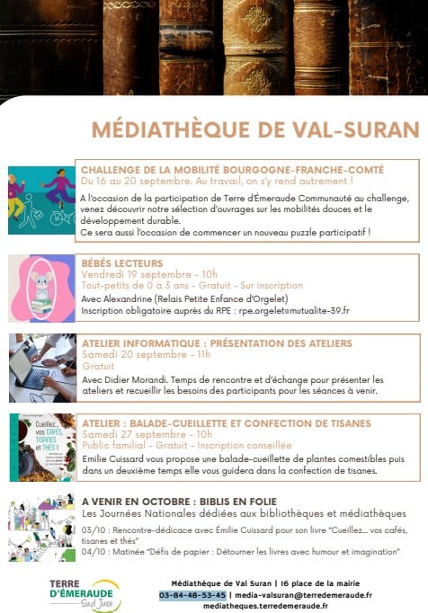 Atelier : balade cueillette et confection de tisanes le samedi 27 septembre à 10h à la médiathèque de Val Suran.