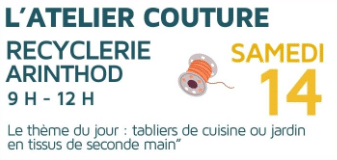 Atelier couture à la recyclerie d'Arinthod le 14 mars de 9h00 à 12h00.