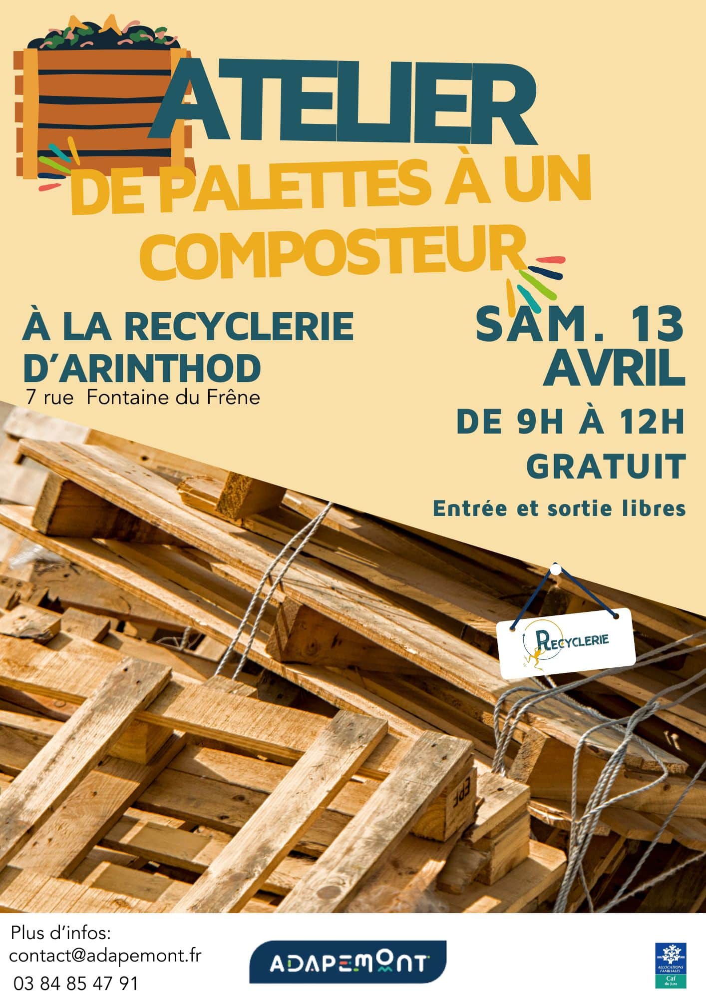 Atelier de palettes à un composteur le 13 avril de 9h00 à 12h00 à la recyclerie d'Arinthod.