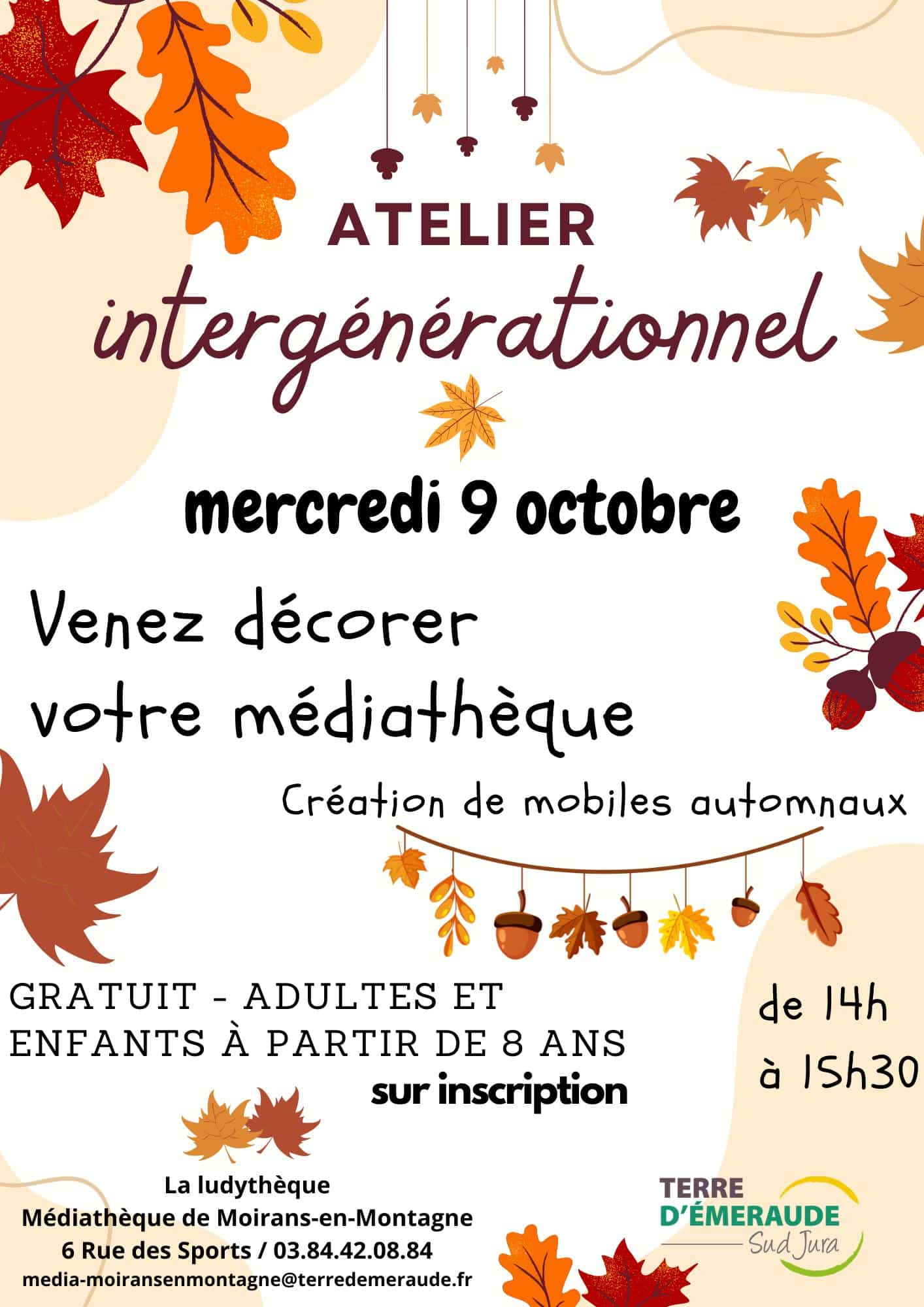 Venez décorer votre médiathèque (création de mobiles automnaux) le 9 octobre de 14h00 à 15h30.