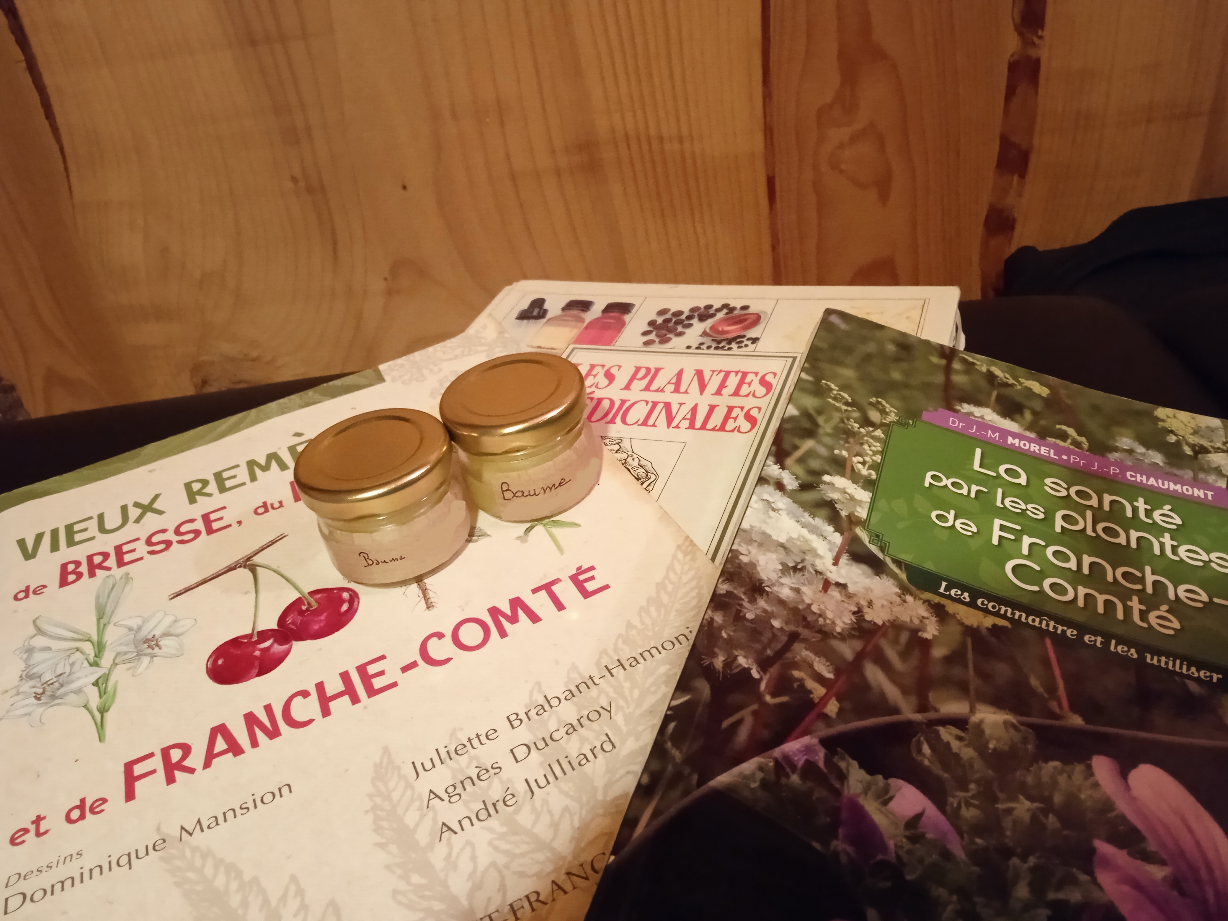 Confection d'un baume doux pour la peau et aux vertus respiratoires, à partir de plantes locales, cueillies ici, dans le Jura ! Chacun repart avec le savoir-faire, et un baume pour soi, ou à offrir!