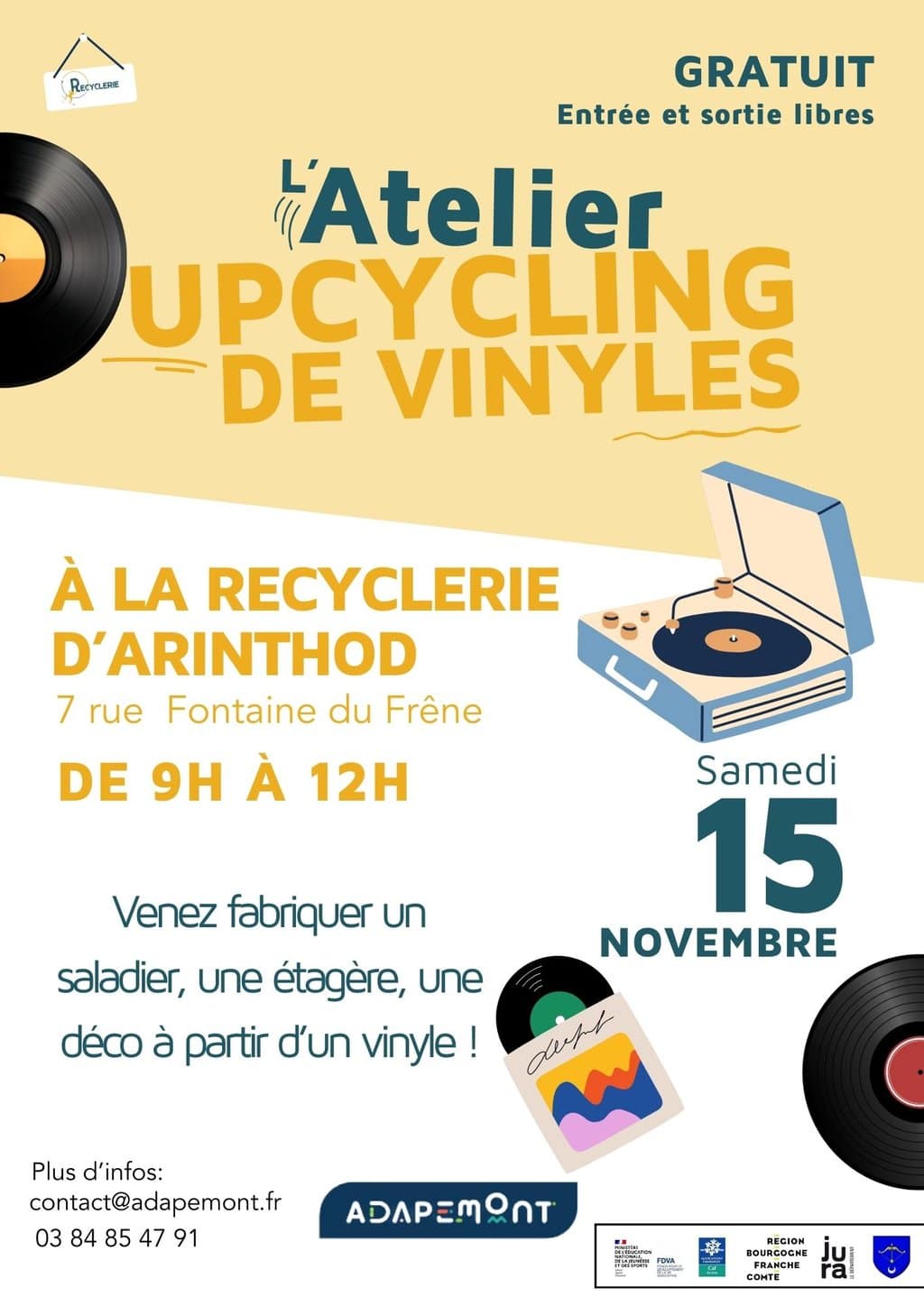 Atelier upcycling de vinyles à la recyclerie d'Arinthod de 9h00 à 12h00.