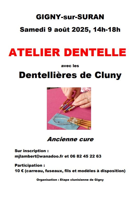 Atelier dentelle le samedi 9 août 2025, de 14 à 18h avec les Dentellières de Cluny