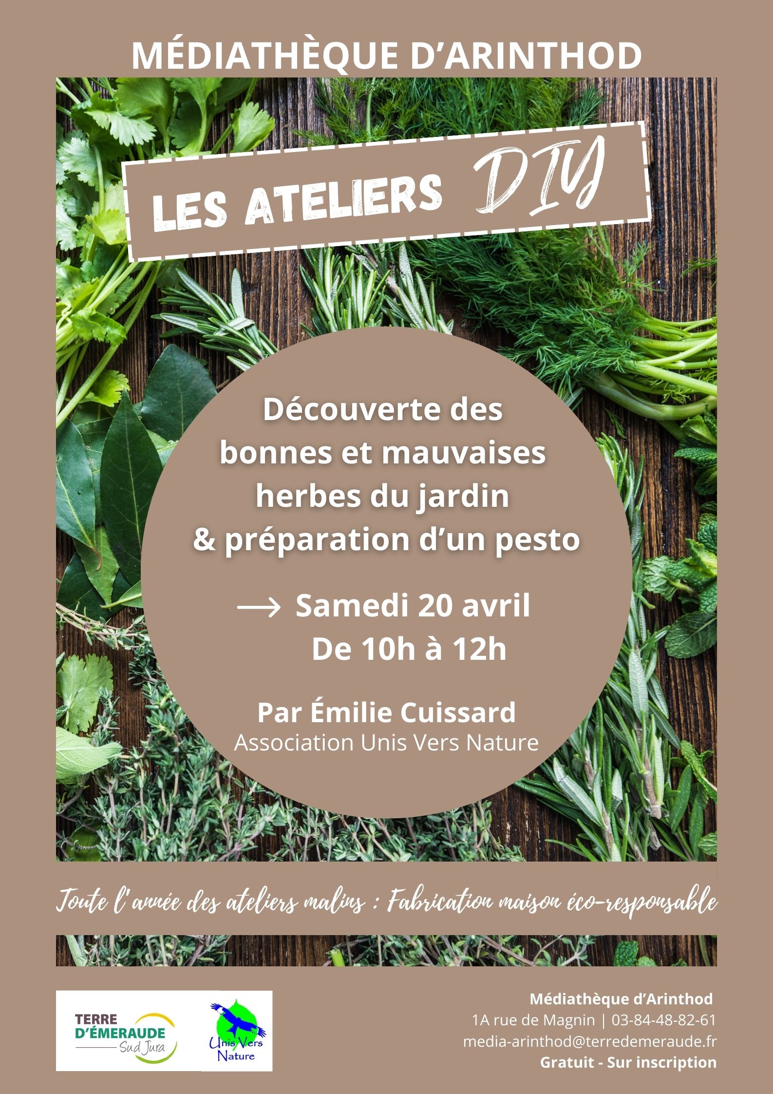 Ateliers malins, fabrication maison éco-responsable" le 20 avril de 10h00 à 12h00 à la médiathèque d'Arinthod.