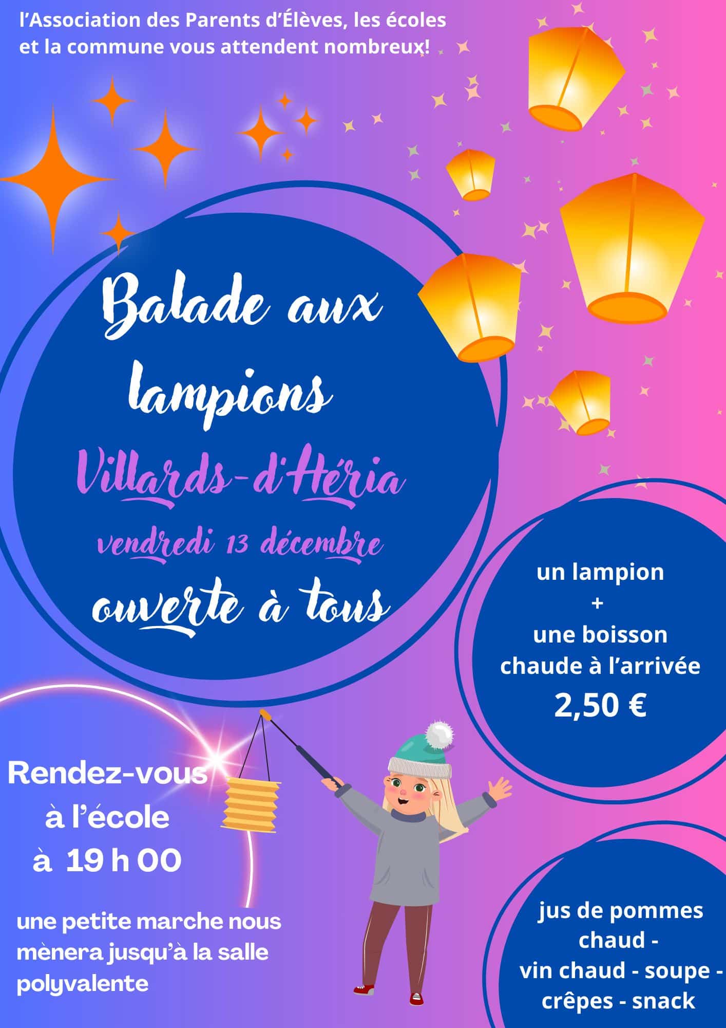 Balade aux lampions le 13 décembre à 19h00 devant l'école primaire de Villards d'Héria.
