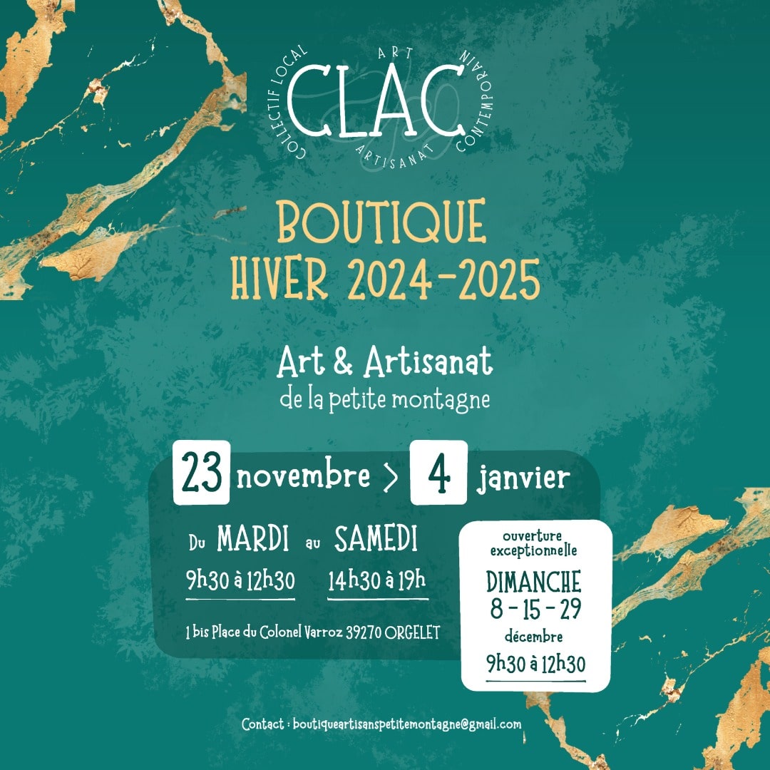 Ouverture de la boutique éphémère "art et artisanat de la petite montagne" du 23 novembre au 4 janvier du mardi au samedi de 9h30 à 12h30 et de 14h30 à 19h00.