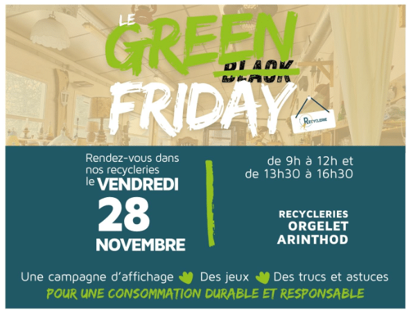 C'est le green friday le vendredi 28 novembre à la recyclerie d'Orgelet de 9h à 12h et 13h30 à 16h30.