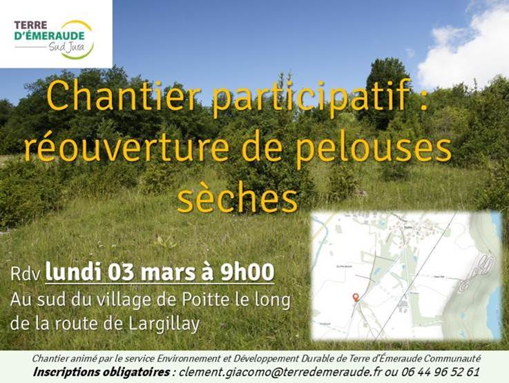 Rendez-vous le 03 mars à 9h00 au sud du village de Poitte, le long de la route de Largillay (voir carte). Le chantier se terminera entre 15h00 et 16h00.