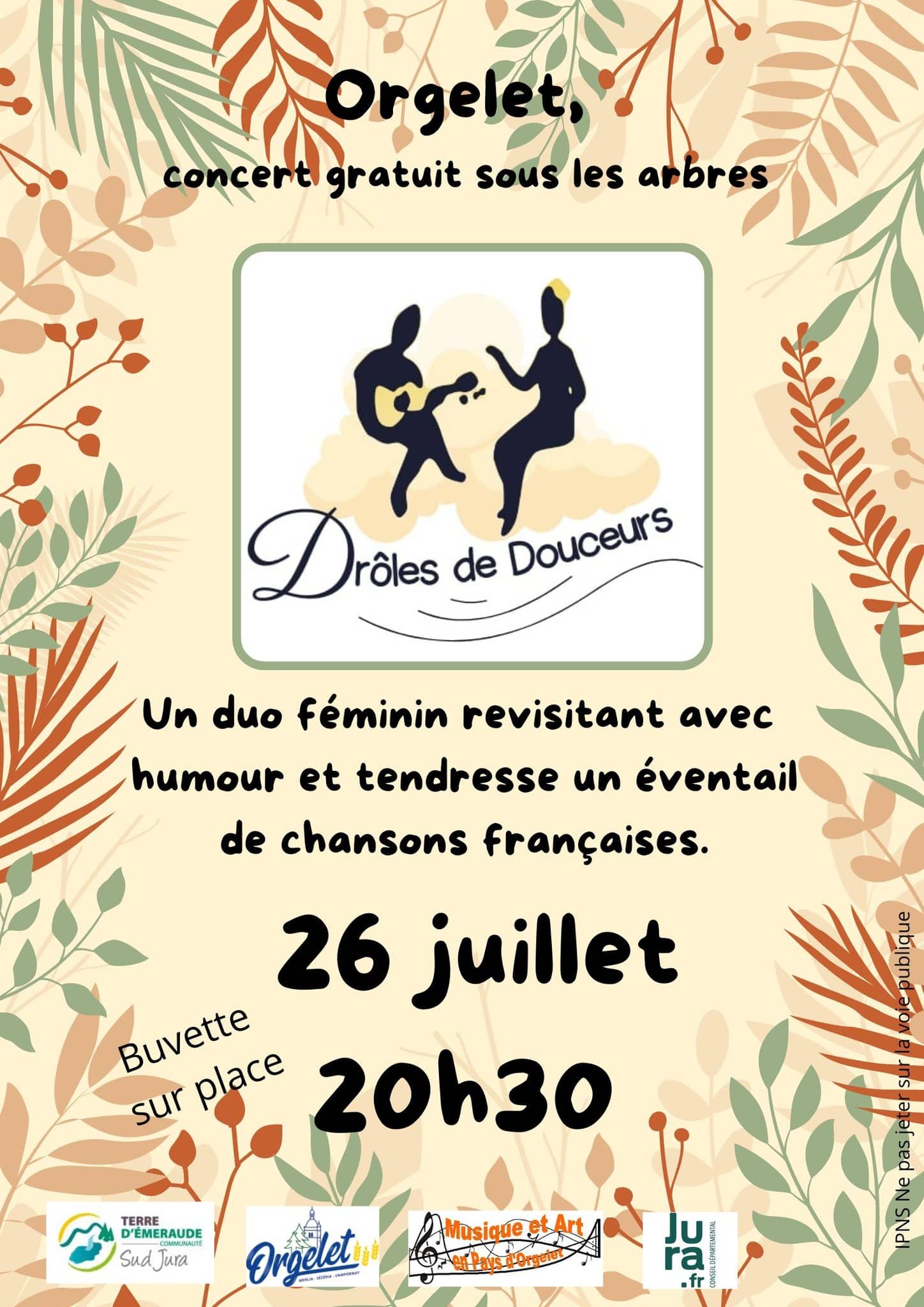 Concert gratuit sous les arbres le 26 juillet à 20h30 à Orgelet.