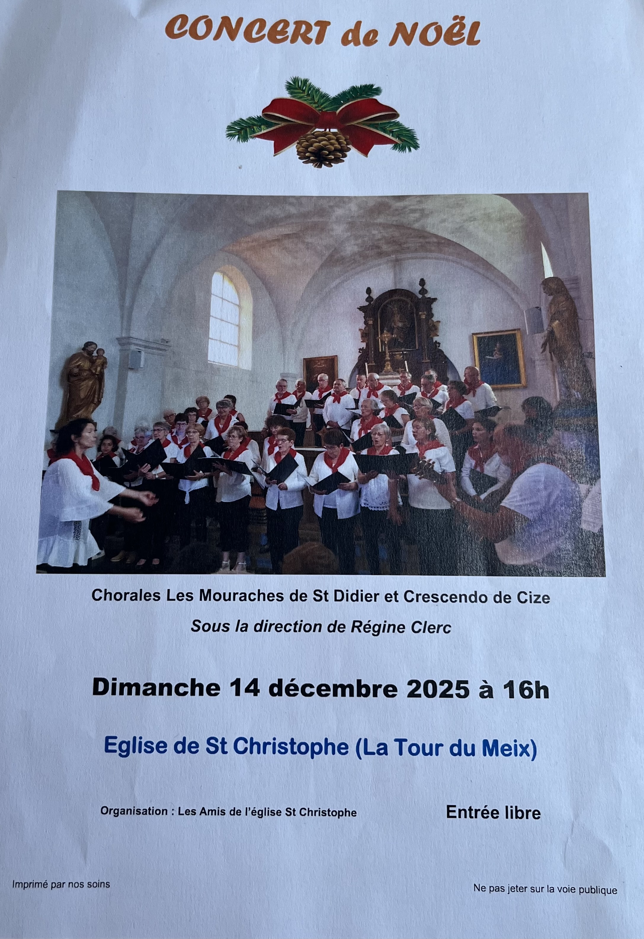 Concert de Noël le 14 décembre à 16h à l'église de Saint-Chrsitophe à la Tour-du-Meix.