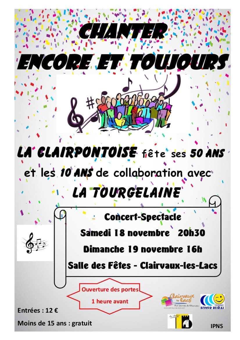 Concert et spectacle le 18 novembre à 20h30 et le dimanche 19 novembre à 16h00 à la salle des fêtes de Clairvaux-les-Lacs.