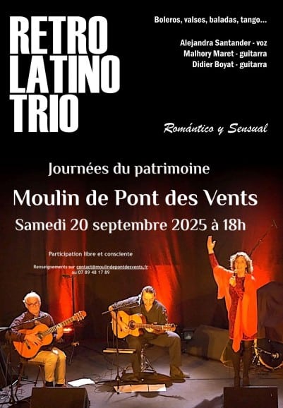 Concert du groupe Retro Latino Trio le 20 septembre à partir de 18h au Moulin du Pont des Vents.