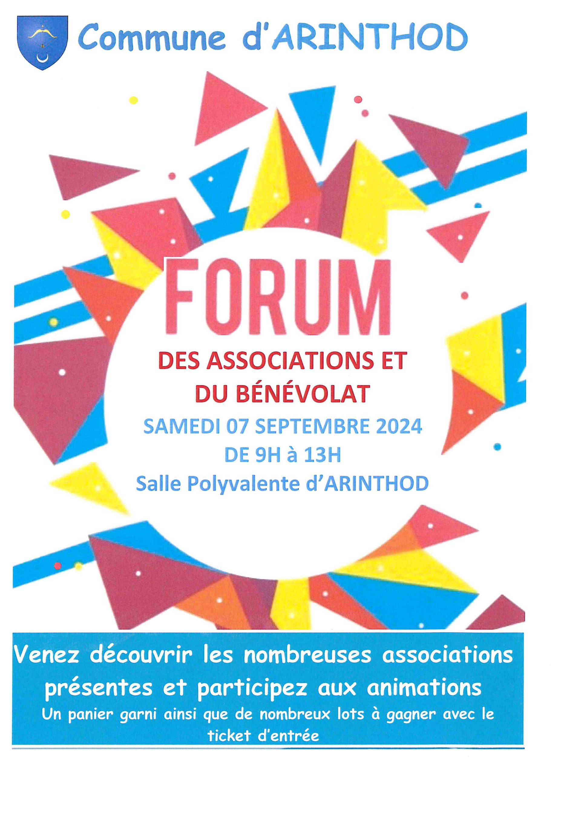 Forum des associations le 07 septembre de 9h00 à 13h00 à la salle polyvalente d'Arinthod.