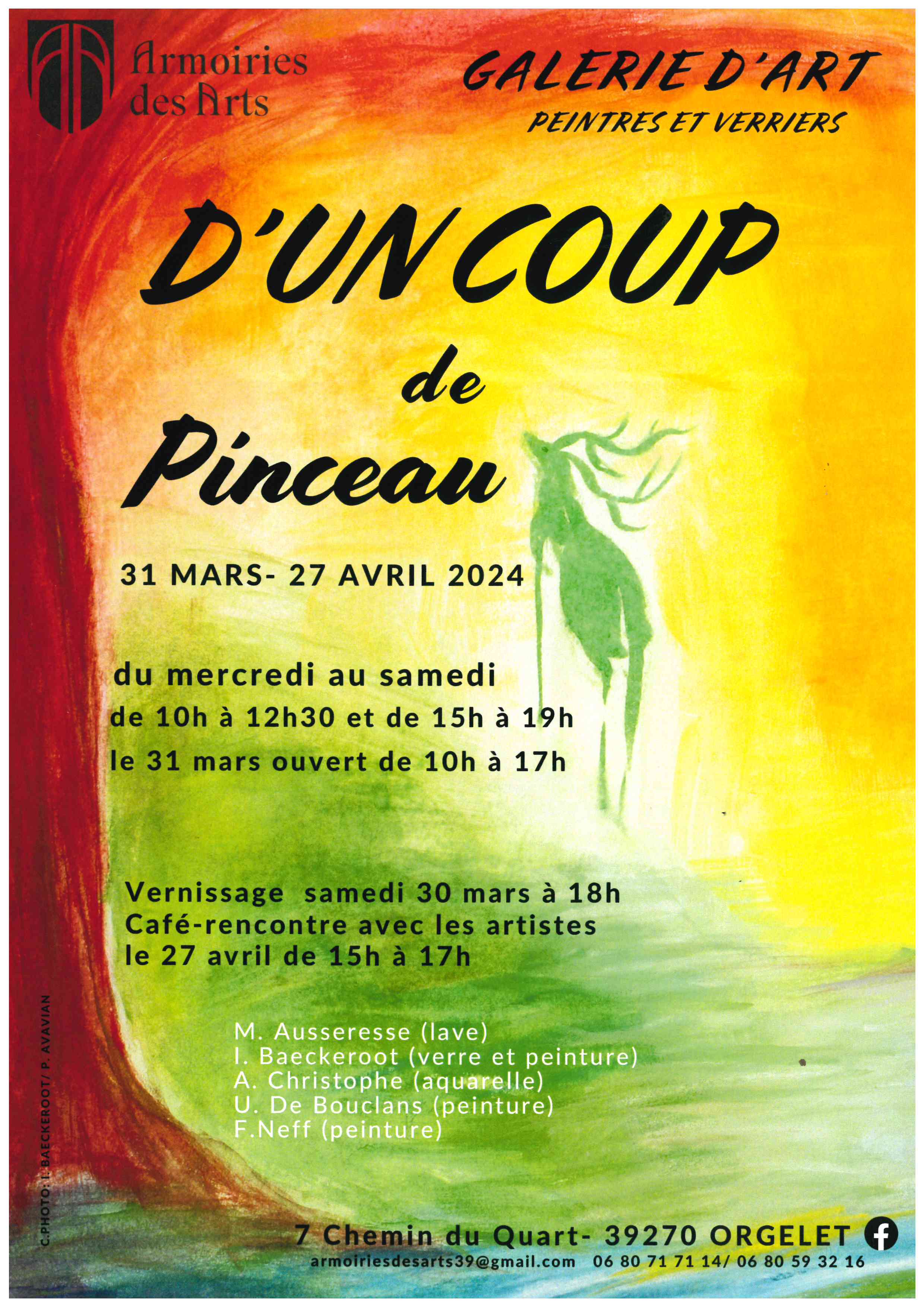 Galerie d'art "D'un coup de pinceau" du 31 mars au 27 avril au armoirie des arts à Orgelet. Peintres et verriers.