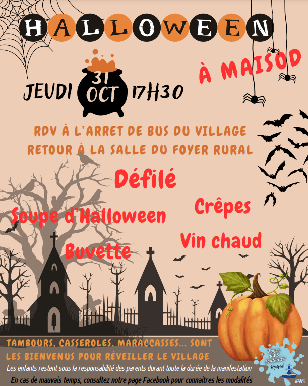 Défilé, buvette (soupe d'Halloween, crêpes, vin chaud).