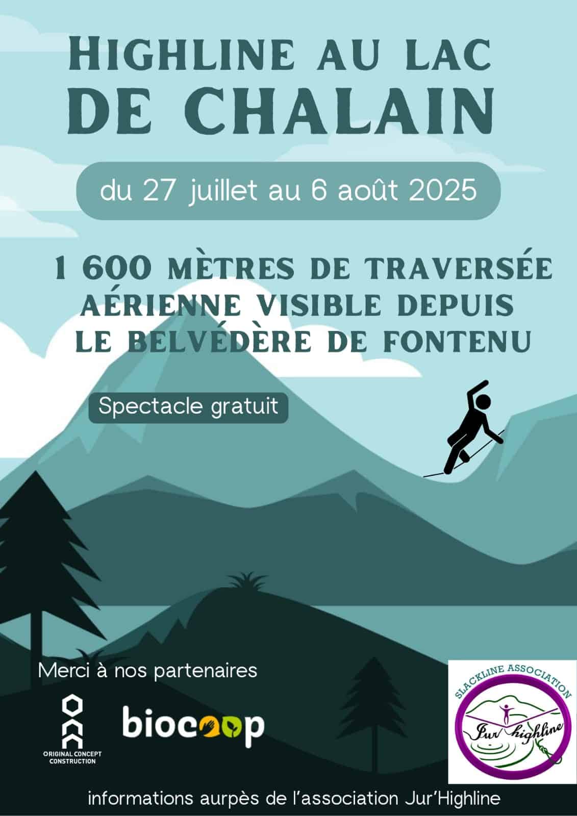 Spectacle gratuit, 1600 mètres de traversée aérienne visible le belvédère de Fontenu au bord du lac de Chalain.
