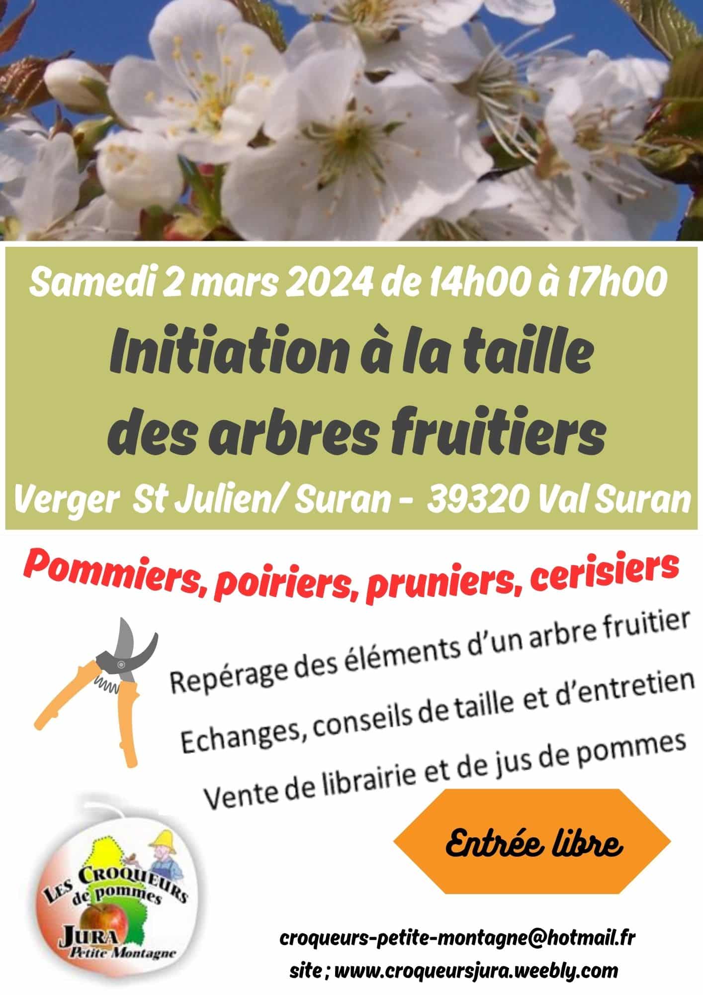 Initiation à la taille des arbres fruitiers le 2 mars de 14h à 17h au verger de St Julien de Val Suran. Pommiers, poiriers, pruniers et cerisiers.
