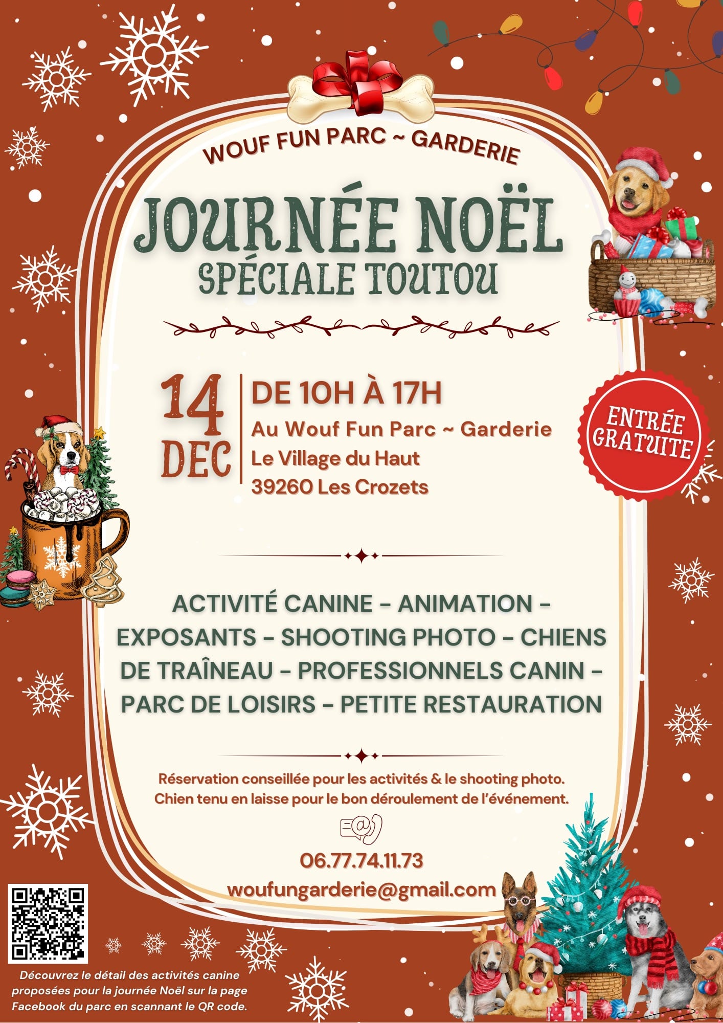 Journée noël le 14 décembre de 10h à 17h à la Woof fun parc garderie des Crozets.