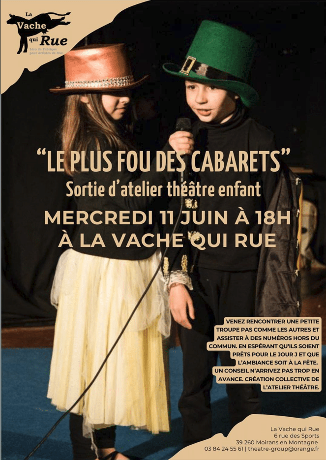 " Le plus fou des cabarets" le 11 juin 2025 à 18h00 à la Vache qui rue de Moirans-en-Montagne.