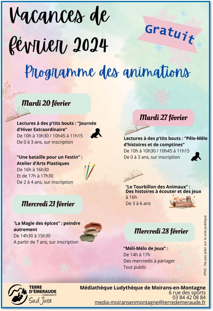 Lecture à des petits bouts : "Pêle-Mêle d'histoires et comptines" le mardi 27 février à la médiathèque de Moirans-en-Montagne.