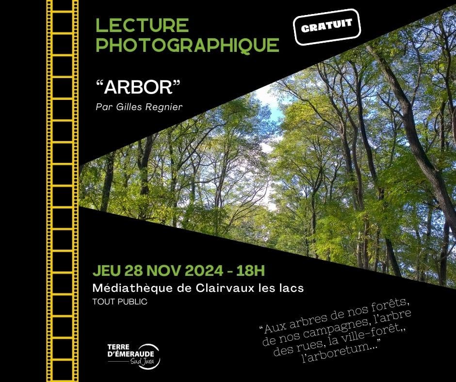 Lecture photographique « Arbor » par Gilles Regnier le jeudi 28 novembre à 18h00 à la médiathèque de Clairvaux-les-Lacs.