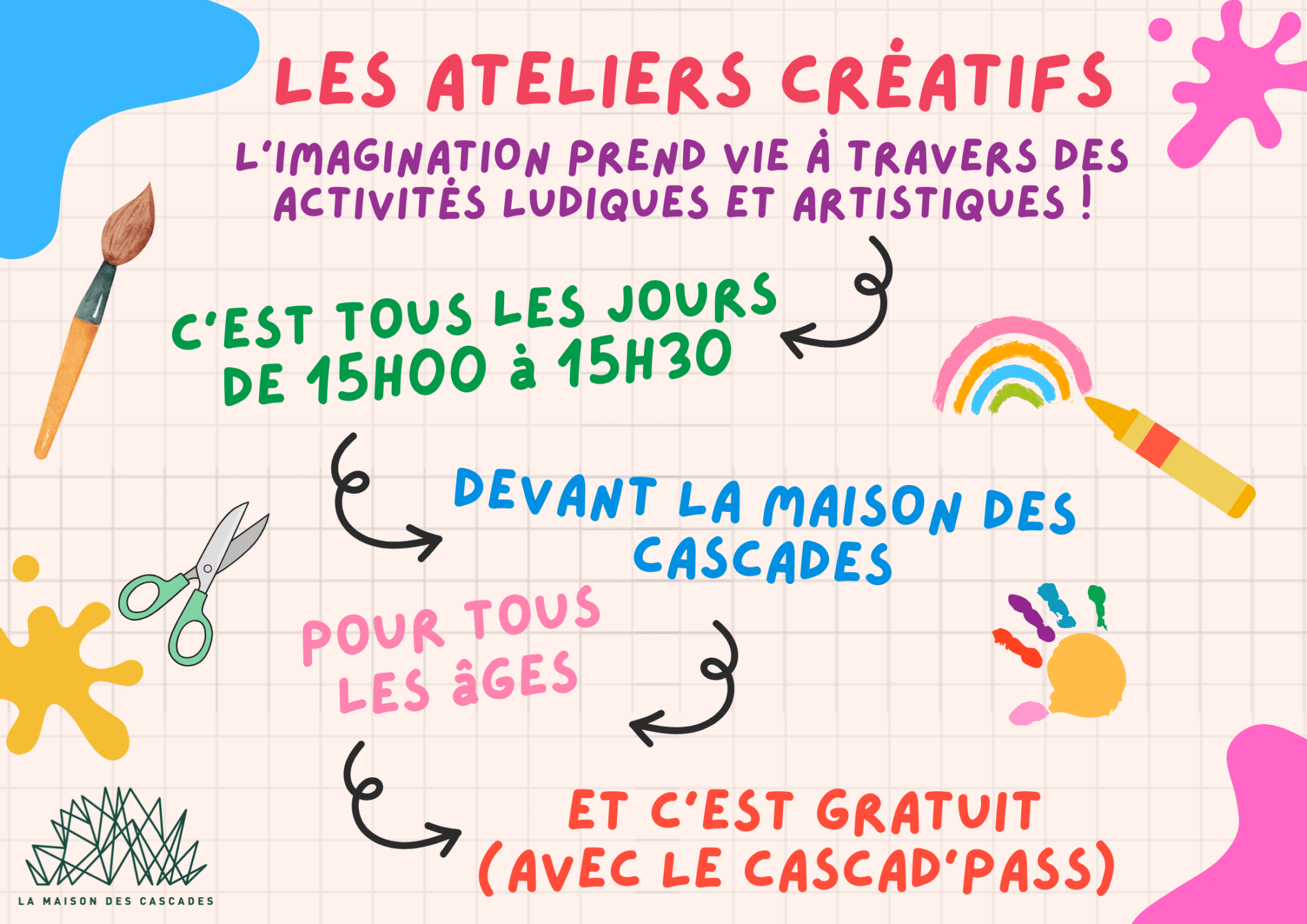 Ateliers créatifs tous les jours de 15h00 à 15h30 devant la Maison des Cascades.