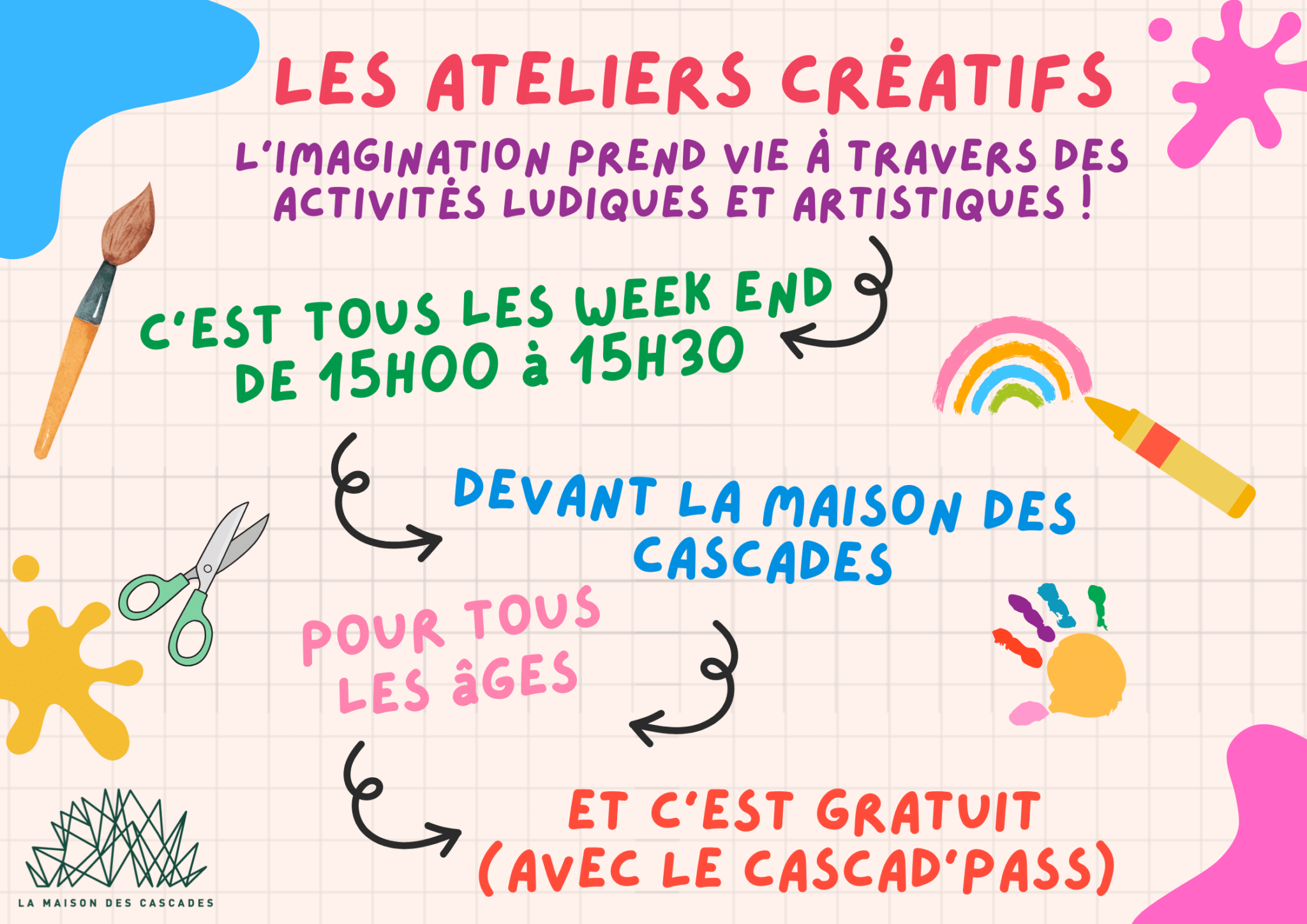Ateliers créatifs chaque week-end de 11h à 11h30 et de 14h à 14h30 aux Cascades du Hérisson.