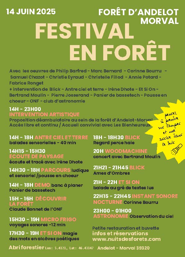Festival en forêt le 14 juin de 14h à 1h00 dans la forêt de Andelot-Morval.