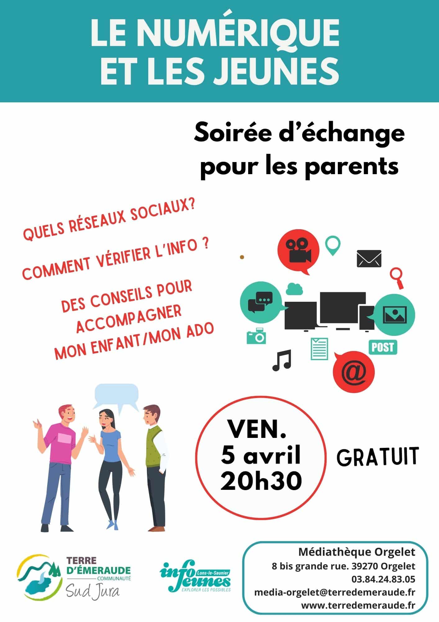 Soirée d'échange "Le numérique et les jeunes" pour les parents le 05 avril à 20h30.