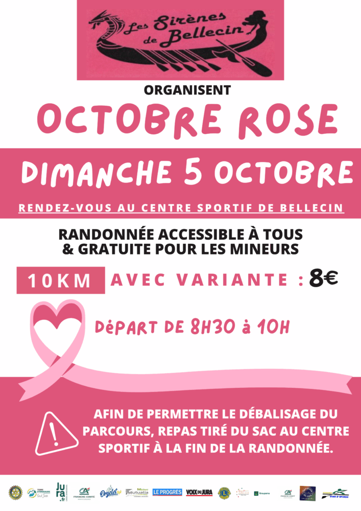 Marche rose le 5 octobre, départ entre 8h30 et 10h au centre sportif de Bellecin.