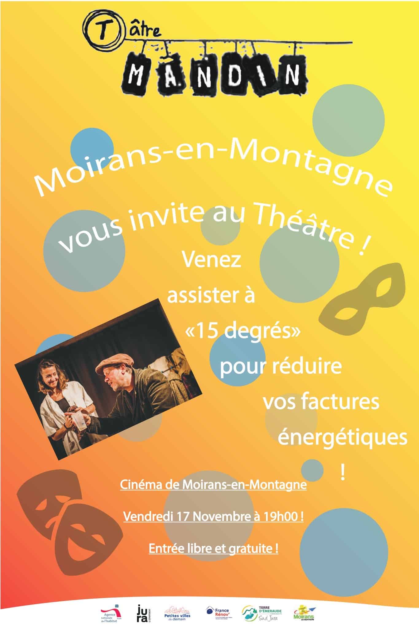 Pièce de théâtre au cinéma de Moirans-en-Montagne le 17 novembre à 19h00. Pièce sur le thème des factures énergétiques. Entrée libre et gratuite.