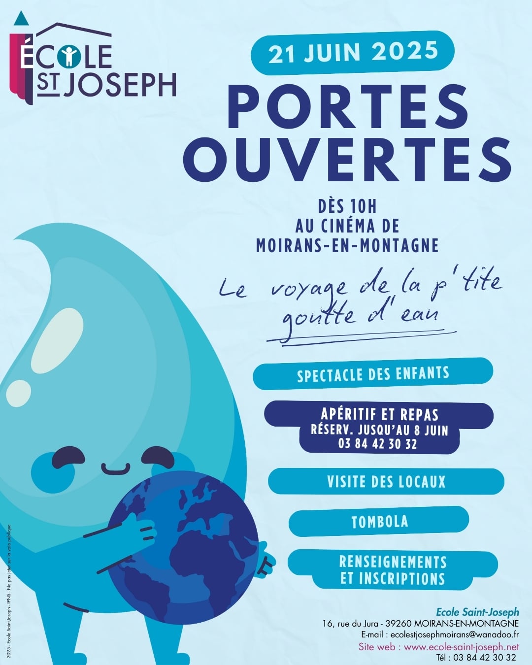 Portes ouvertes de l'école Saint-Joseph de Moirans-en-Montagne le 21 juin à partir de 10h au cinéma de Moirans-ne-Montagne.