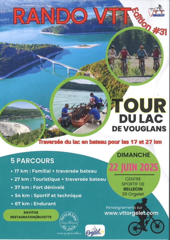 Tour du Lac de Vouglans VTT le dimanche 22 Juin à partir de 7h au centre sportif de Bellecin.