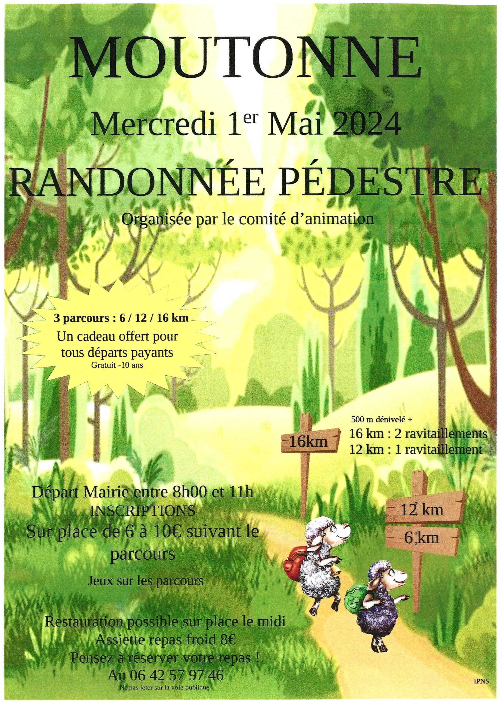 Randonnée pédestre le 1er mai, départ entre 8h00 et 11h00 à la mairie de Moutonne.