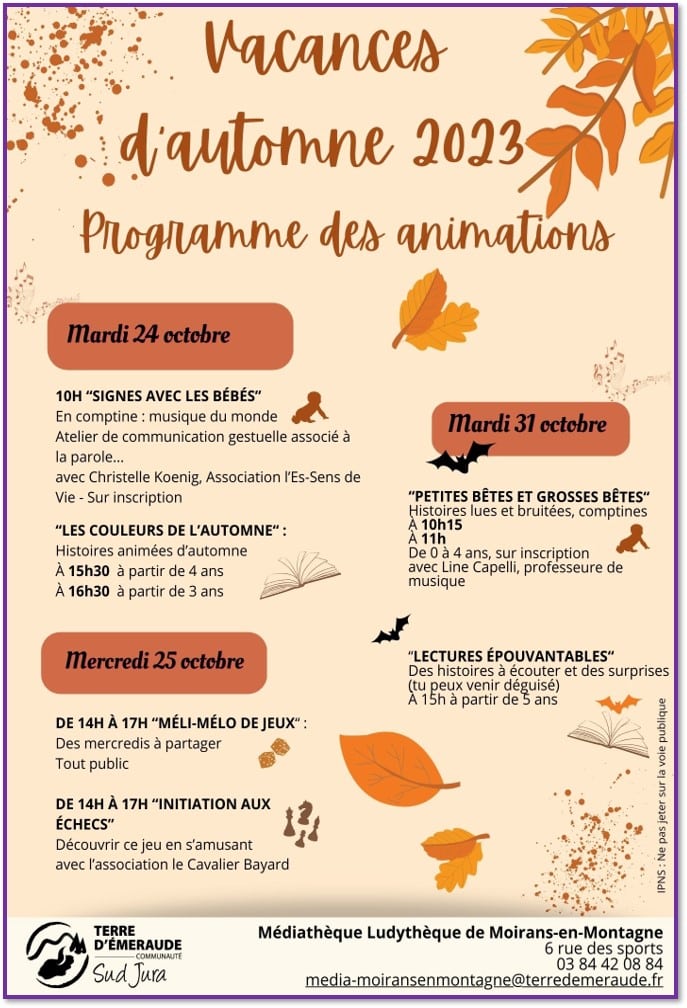 Mardi 24 octobre à la médiathèque de Moirans-en-Montagne