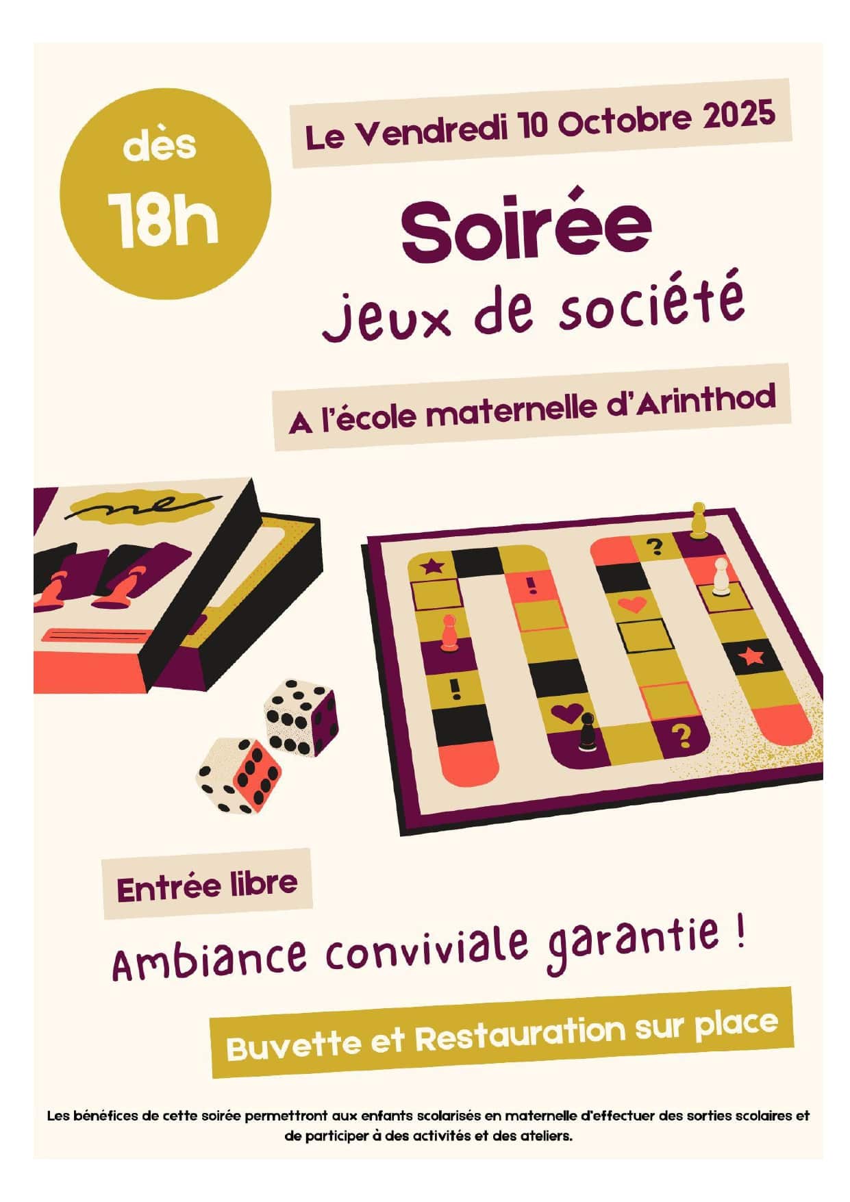 Soirée jeux de société le 10 octobre dès 18h00 à l'école maternelle d'Arinthod.