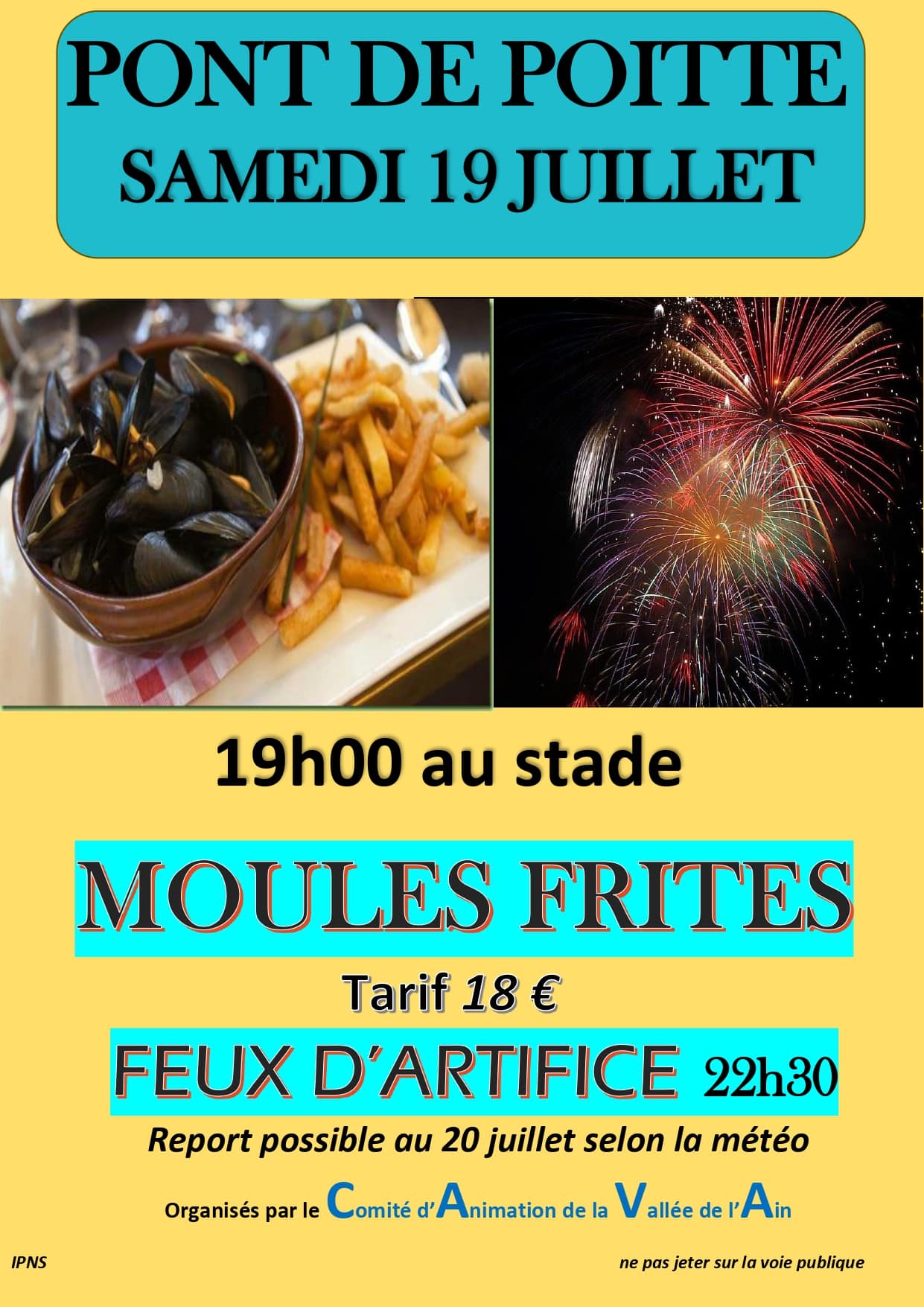 Soirée moules frites le 19 juillet à 19h00 au stade de Pont-de-Poitte.
