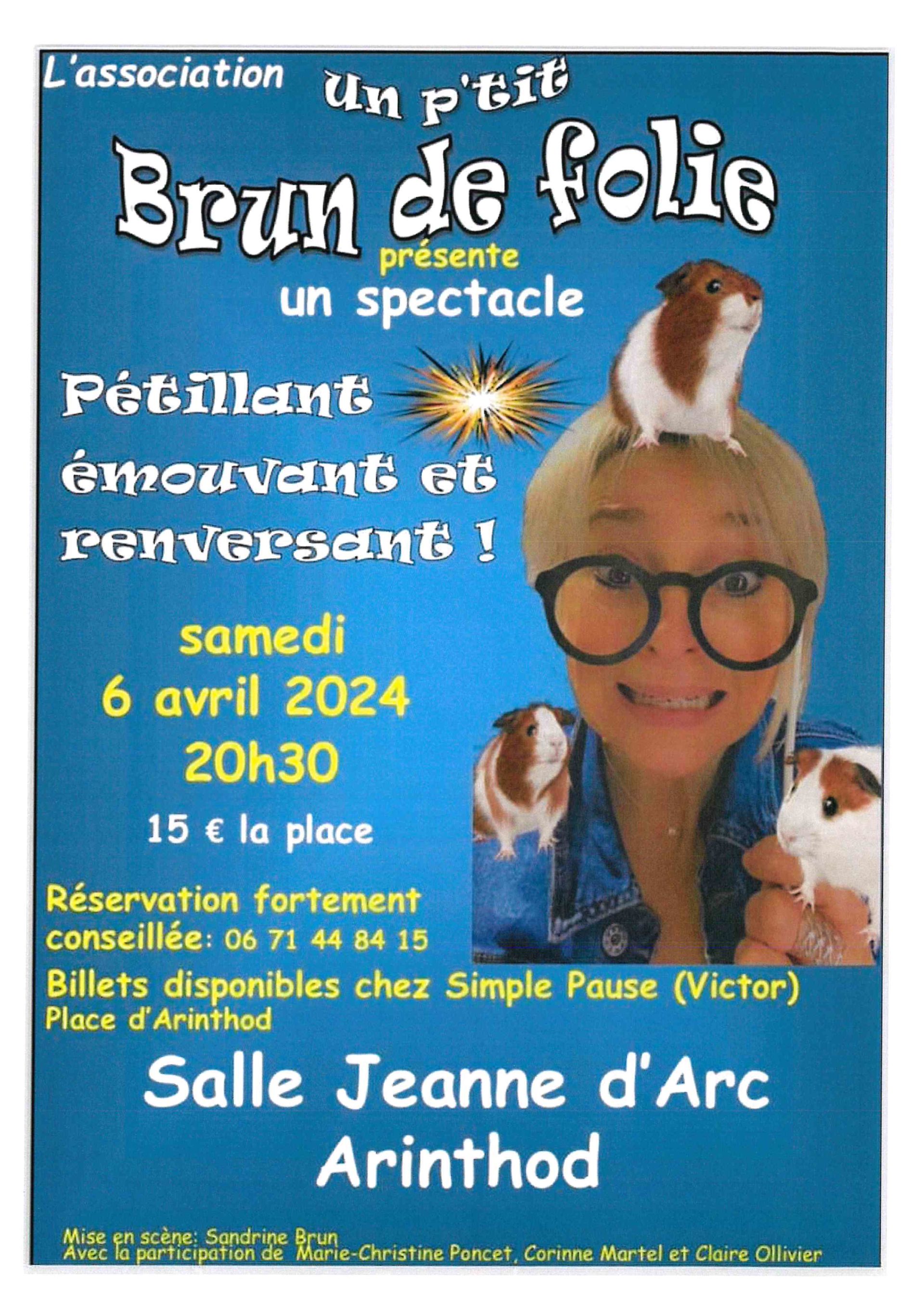 L'association "un p'tit brun de folie" présente une spectacle pétillant, émouvant et renversant le samedi 6 avril à 20h30 !