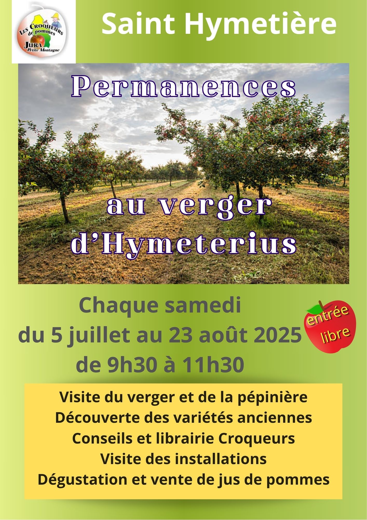 Diverses animation au verger des Croqueurs de pommes tous les samedis du 6 juillet au 24 août de 9h30 à 11h30