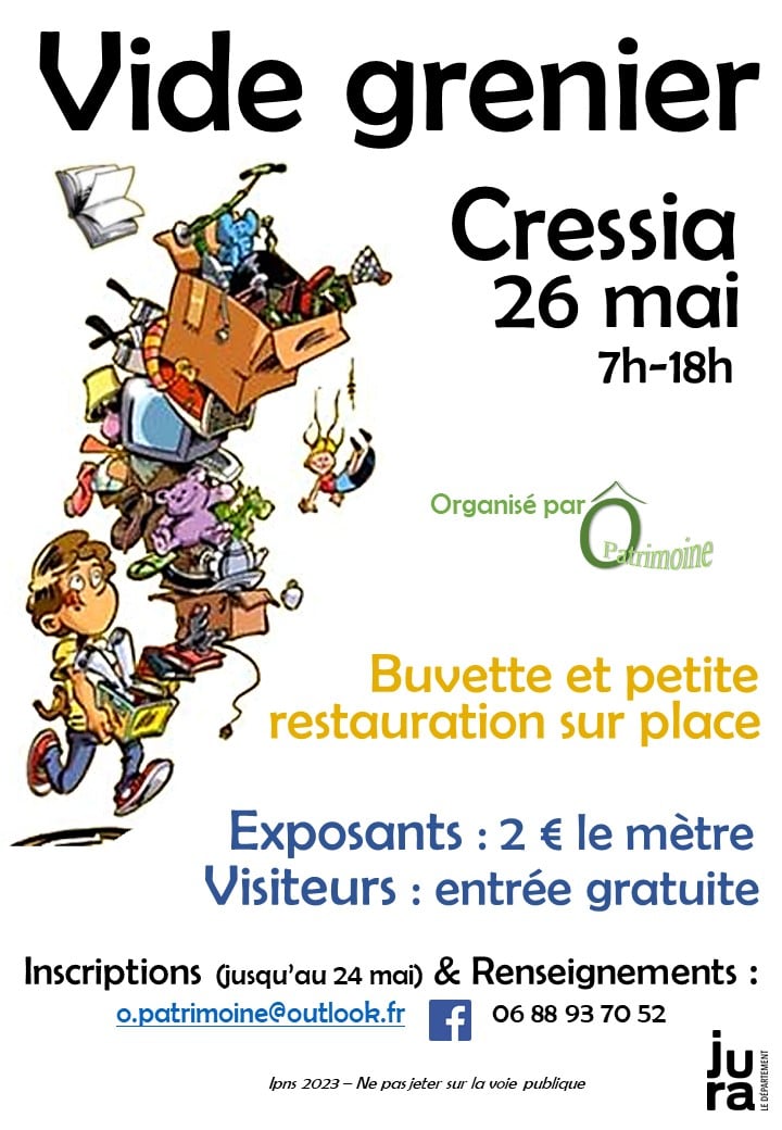 Vide grenier le 26 mai à Cressia de 7h00 à 18h00.