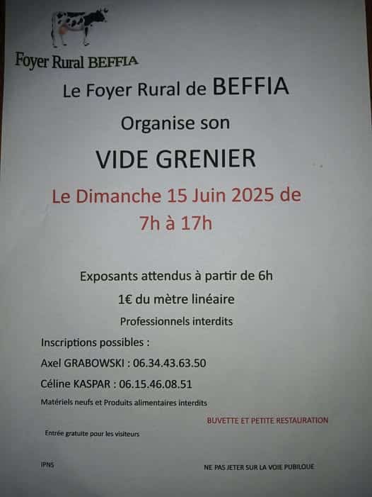 Vide grenier le 15 juin de 7h00 à 17h00 à Beffia.