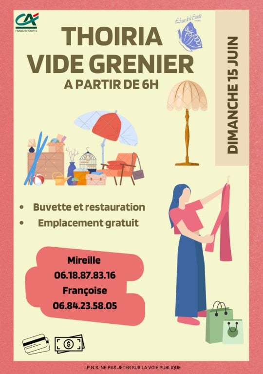 Vide grenier à Thoiria le 15 juin à partir de 6h00, organisé par l'association de l'azuré de la croisette.
