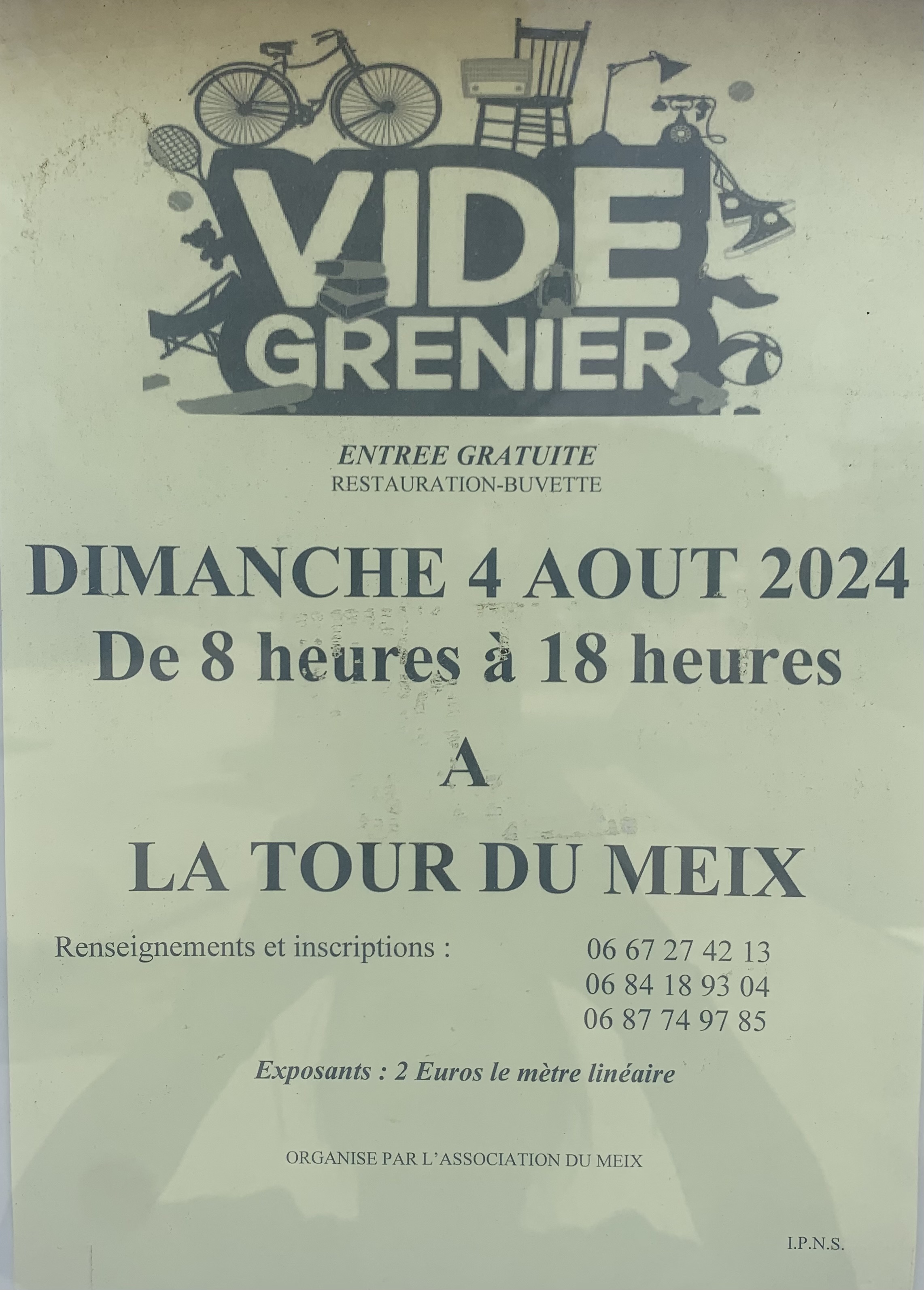 Vide grenier le 4 août de 8h00 à 18h00 à la Tour-du-Meix.