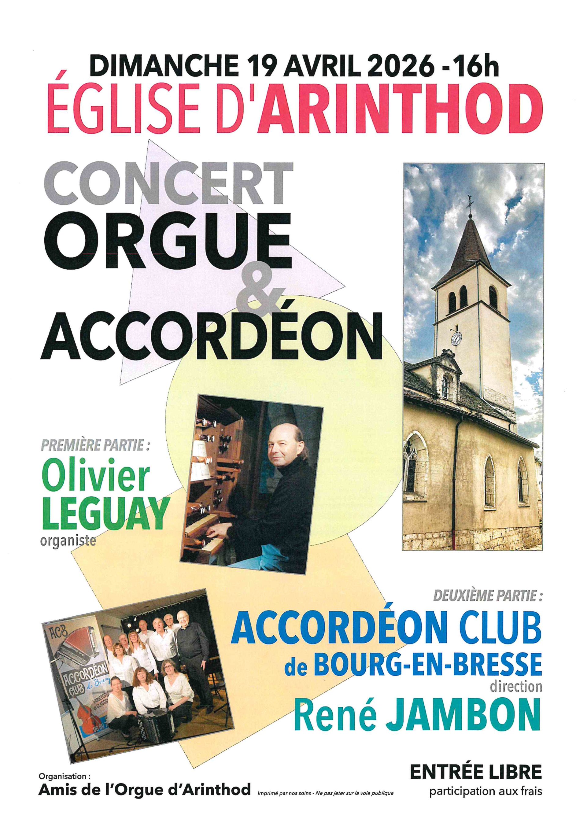 Concert d'orgue et d'accordéon le 19 avril à 16h à l'église d'Arinthod.