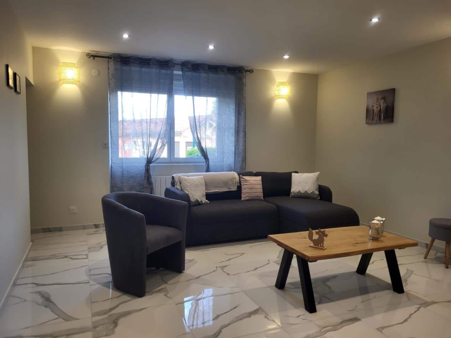 Cette maison mitoyenne, entièrement rénovée vous apportera tout le confort nécessaire pour passer un agréable séjour. Elle se compose au RDC d'une cuisine toute équipée avec espace salle à manger, d'un salon avec canapé convertible (possibilité d'accueillir 1 ou 2 personnes sur demande : +10 euros par personne et par jour) et TV, d'une salle d'eau avec WC, au 1er étage, d'une chambre avec 1 lit double, et d'une salle de bain avec baignoire et WC et au second étage d'une chambre avec 1 lit double et 2 lits simples. Côté extérieur, vous trouverez une terrasse avec un salon de jardin et un barbecue. Idéalement situé au coeur de la région des lacs, vous pourrez rejoindre en moins de 10 minutes le lac de Vouglans (plage de la Mercantine) ou le lac de Clairvaux-les-Lacs. Les amoureux des loisirs de pleine nature pourront profiter des nombreux sentiers pédestre et cyclotourisme, et les pistes de ski de fond et raquette se trouvent à une quinzaine de minutes. Les propriétaires, Monique et Didier, se feront un plaisir de vous conseiller sur les sites touristiques et les loisirs à découvrir à proximité.Possibilité de garer deux véhicules sous la terrasse du propriétaire + un emplacement à coté. Local fermé pour vélos et 2 motos. Seuls les chats et les chiens sont acceptés merci de votre compréhension.