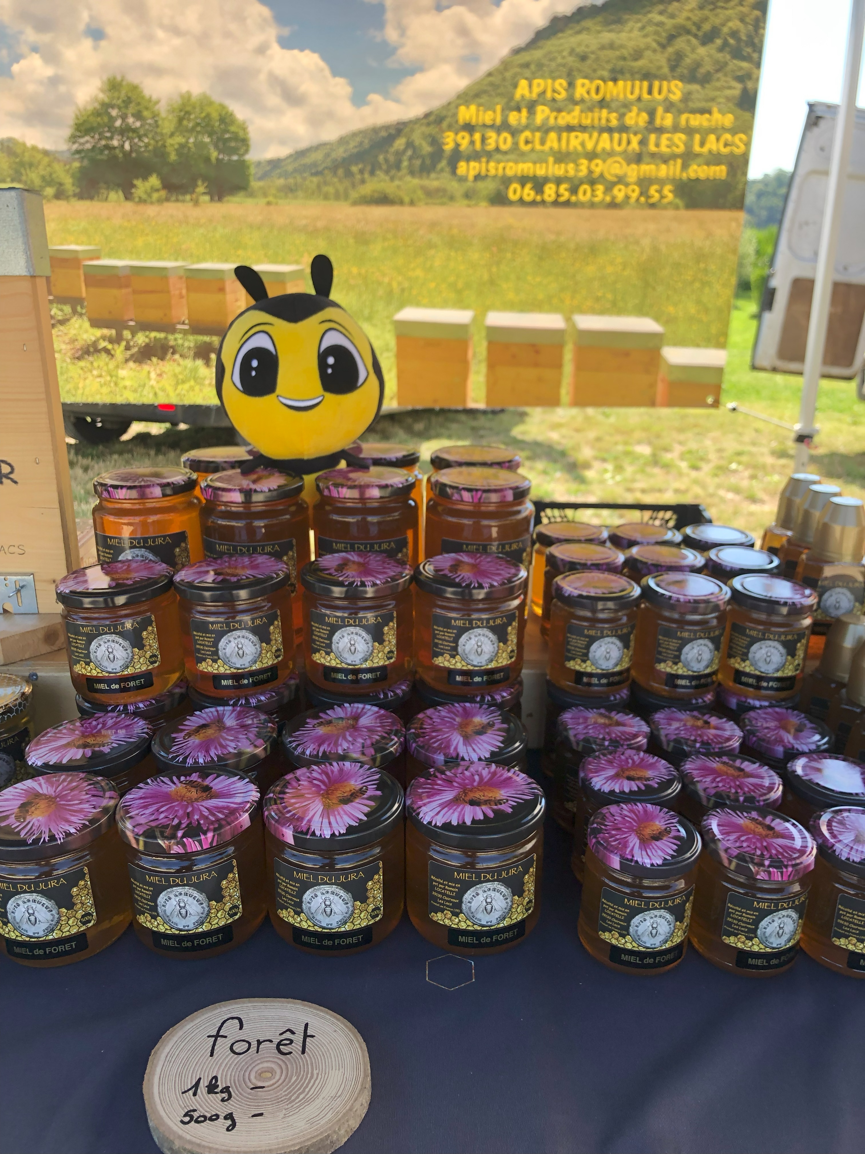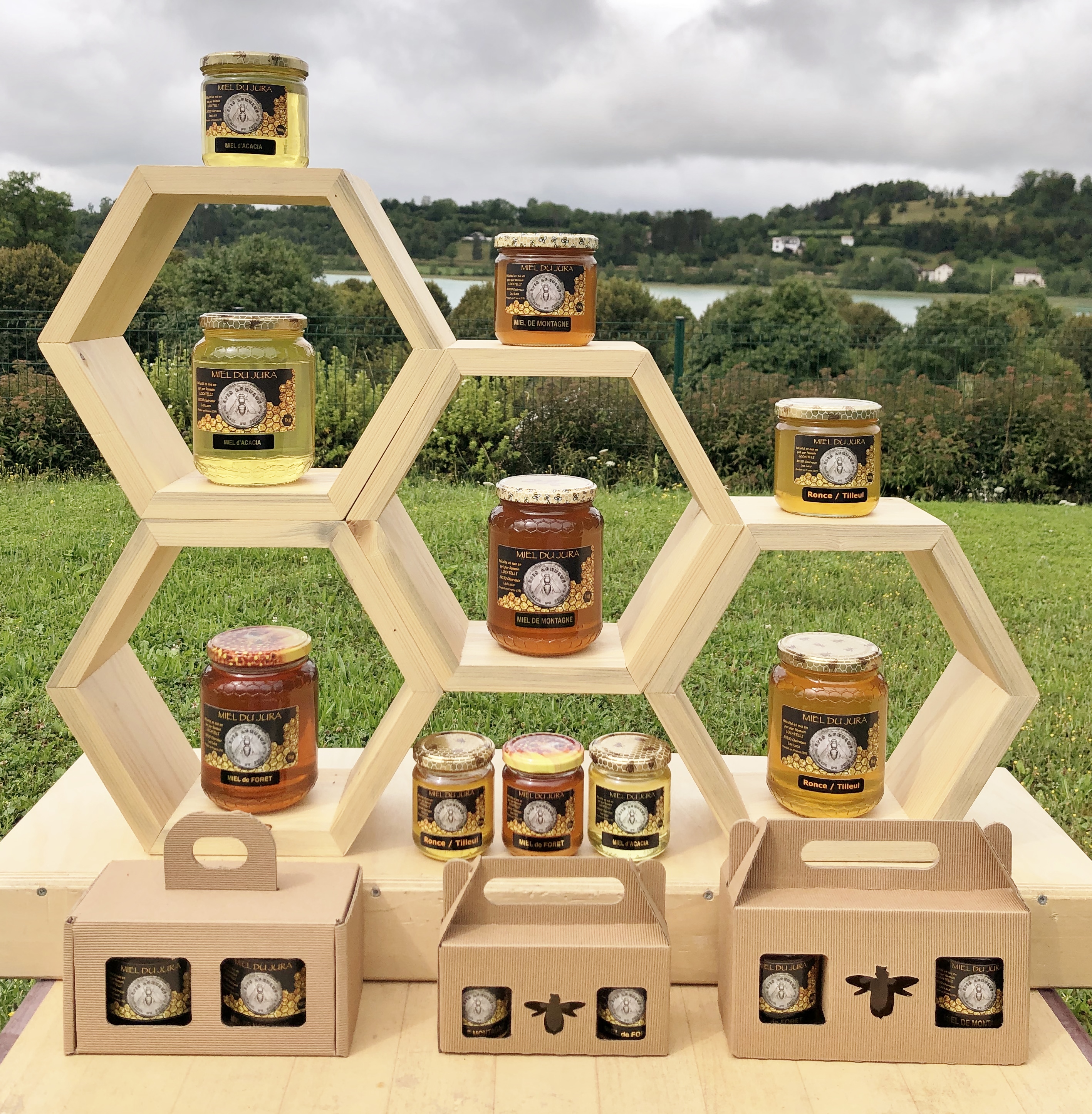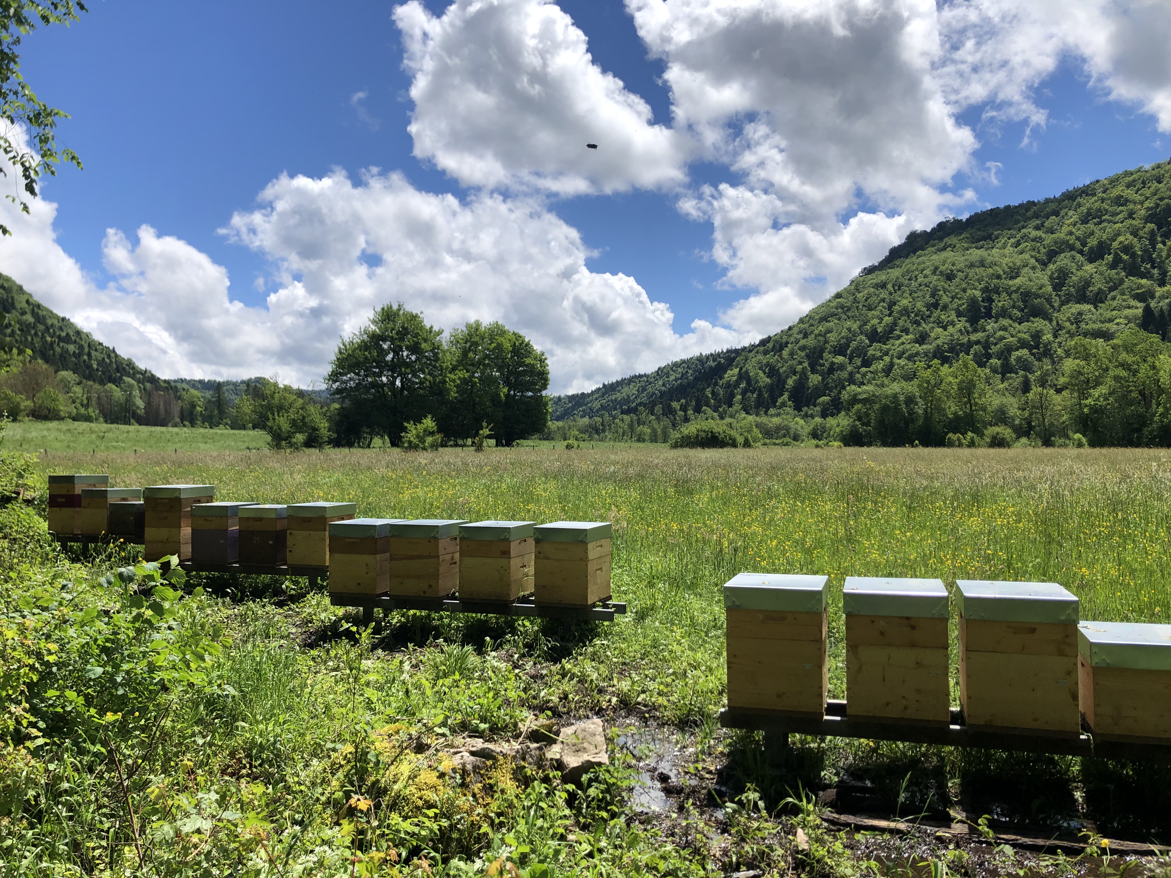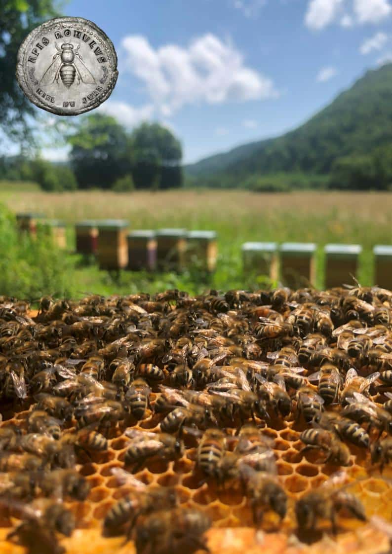 Ici tout est 100% local et artisanal : de la fabrication des ruches en épicéa du Haut Jura jusqu'à la mise en pot de la récolte, tout est mené avec passion.